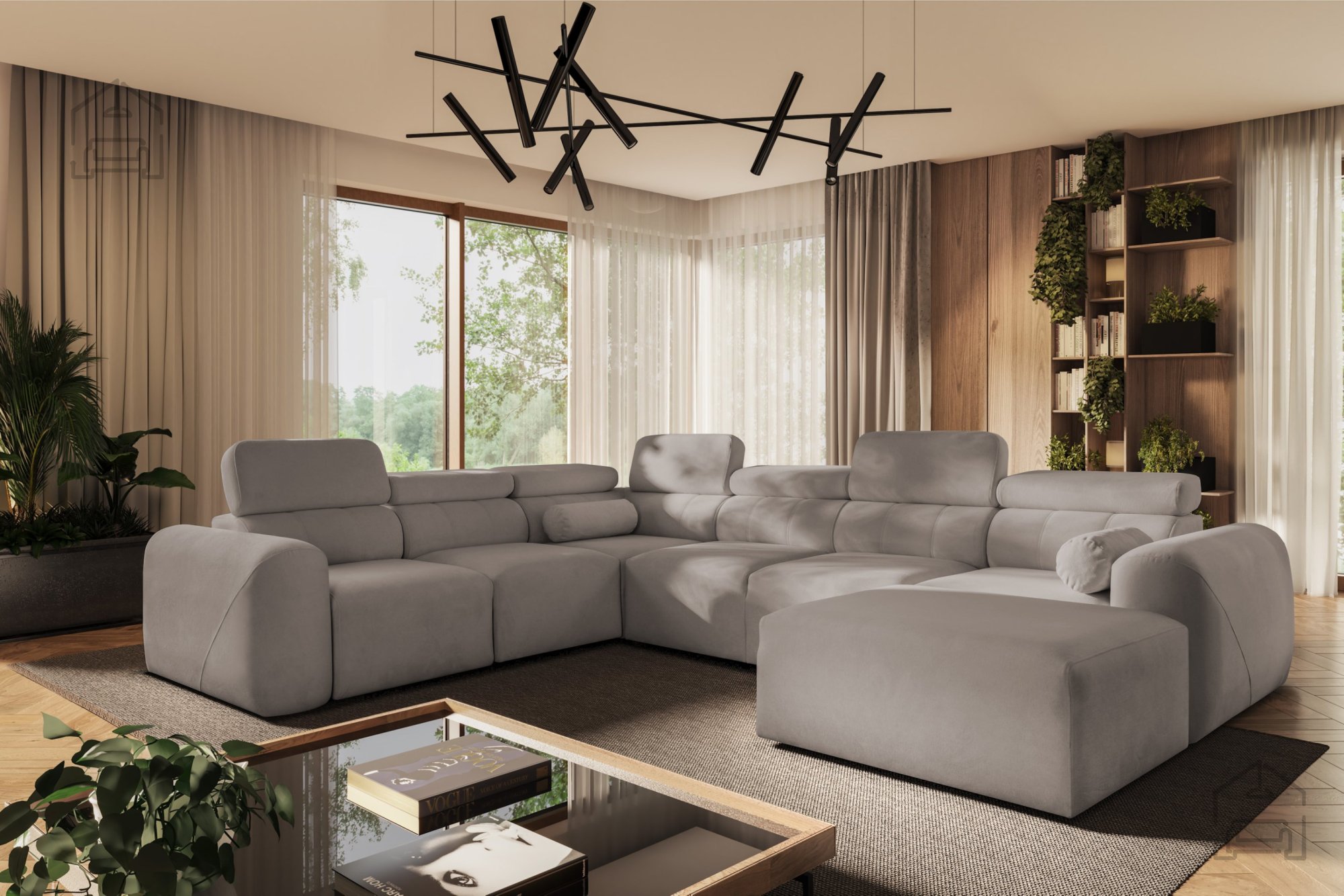 Die U-förmige Wohnlandschaft Volare VIII – Brattex vereint alles, was ein modernes Wohnzimmer braucht: Komfort, Funktionalität, hochwertige Verarbeitung und ästhetische Perfektion. Mit ihrer Geräumigkeit, den weich gepolsterten Sitzen und der Ausziehfunktion zu einem Bett ist sie die perfekte Lösung für jedes Zuhause, in dem Entspannung, Geselligkeit und Eleganz zusammenkommen.