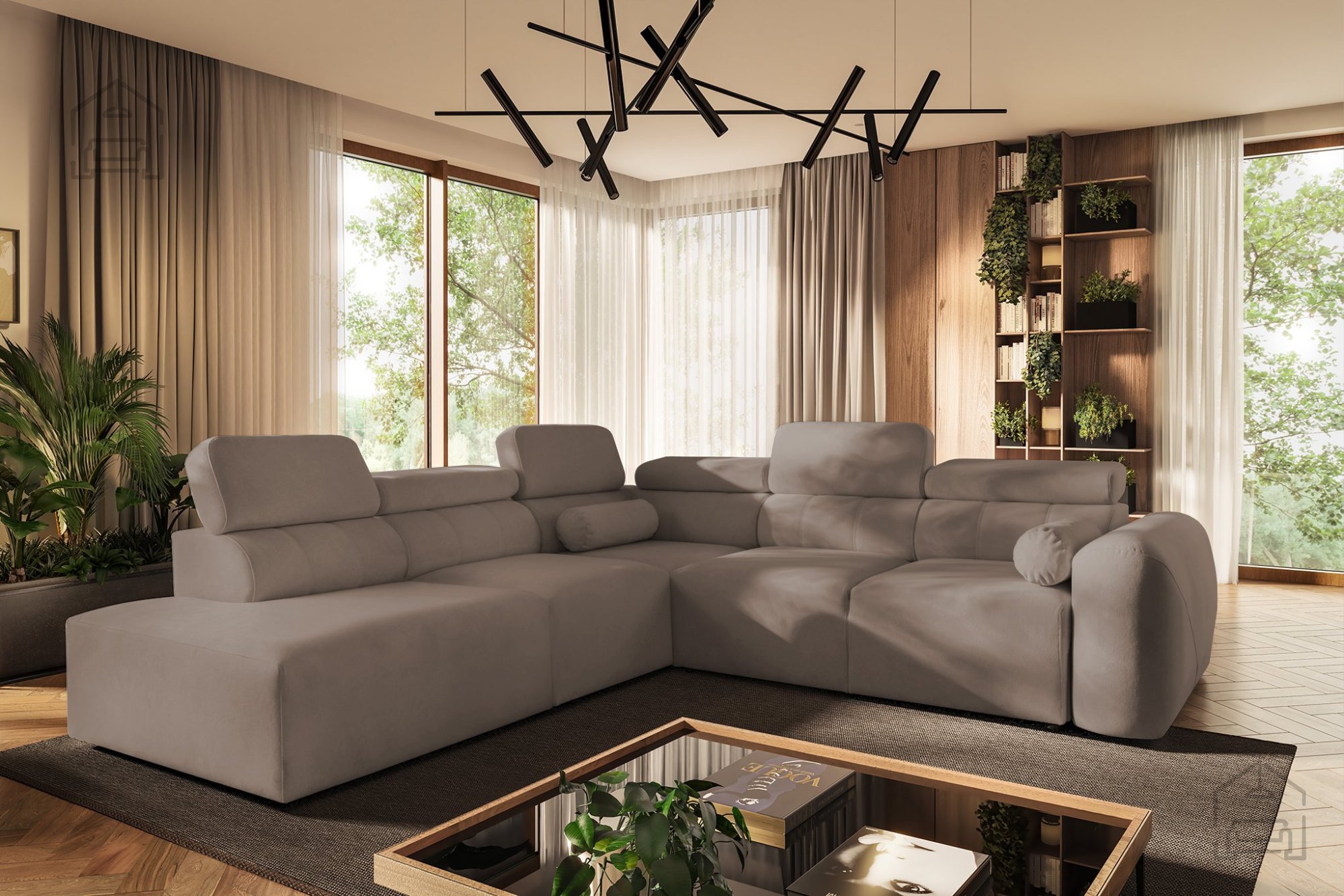Die Ecksofa-Garnitur Volare IX ist die ideale Lösung für moderne Haushalte, in denen das Gleichgewicht zwischen Ästhetik und Funktionalität wichtig ist. Ihr Erscheinungsbild wird durch verstellbare Kopfstützen ergänzt, die zusätzlichen Komfort beim Fernsehen oder Lesen bieten. Aufgrund der durchdachten Konstruktion und der hochwertigen Materialien ist dies ein Möbelstück, das viele Jahre lang dienen wird.