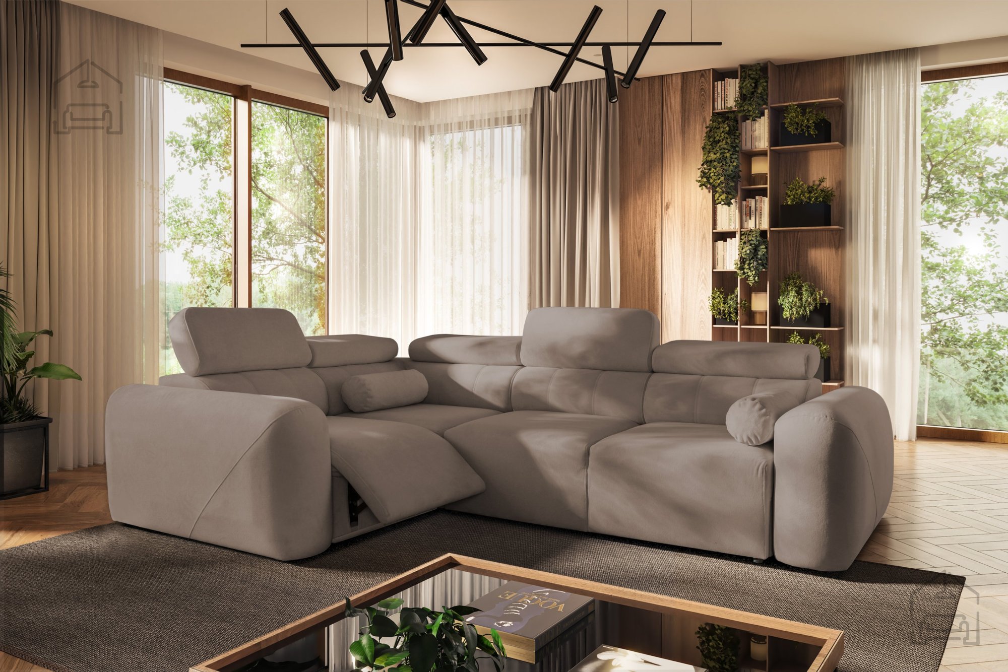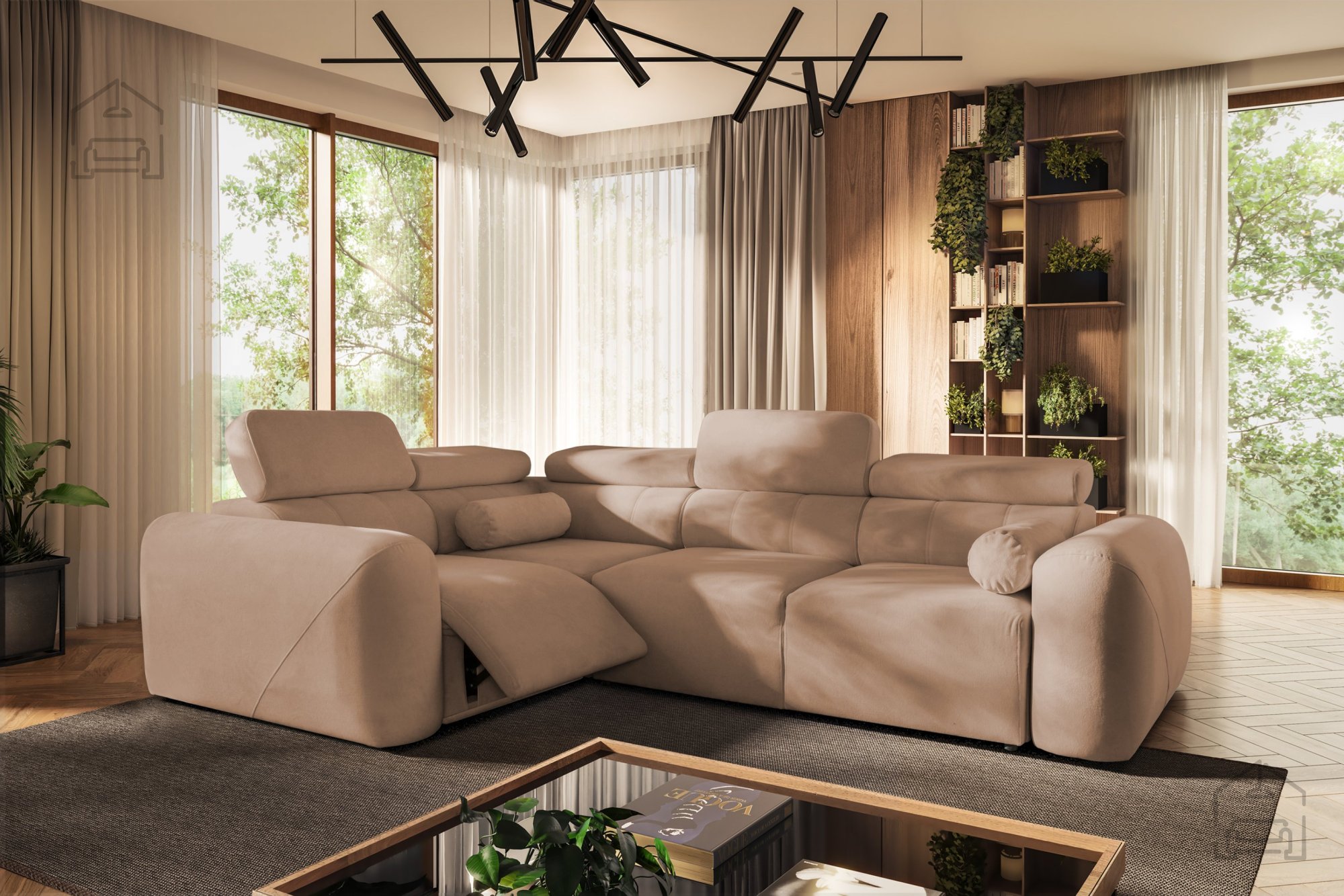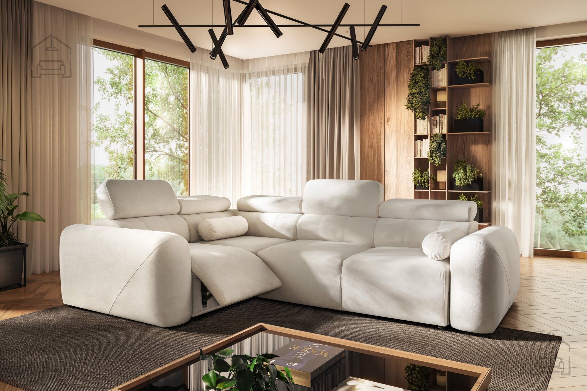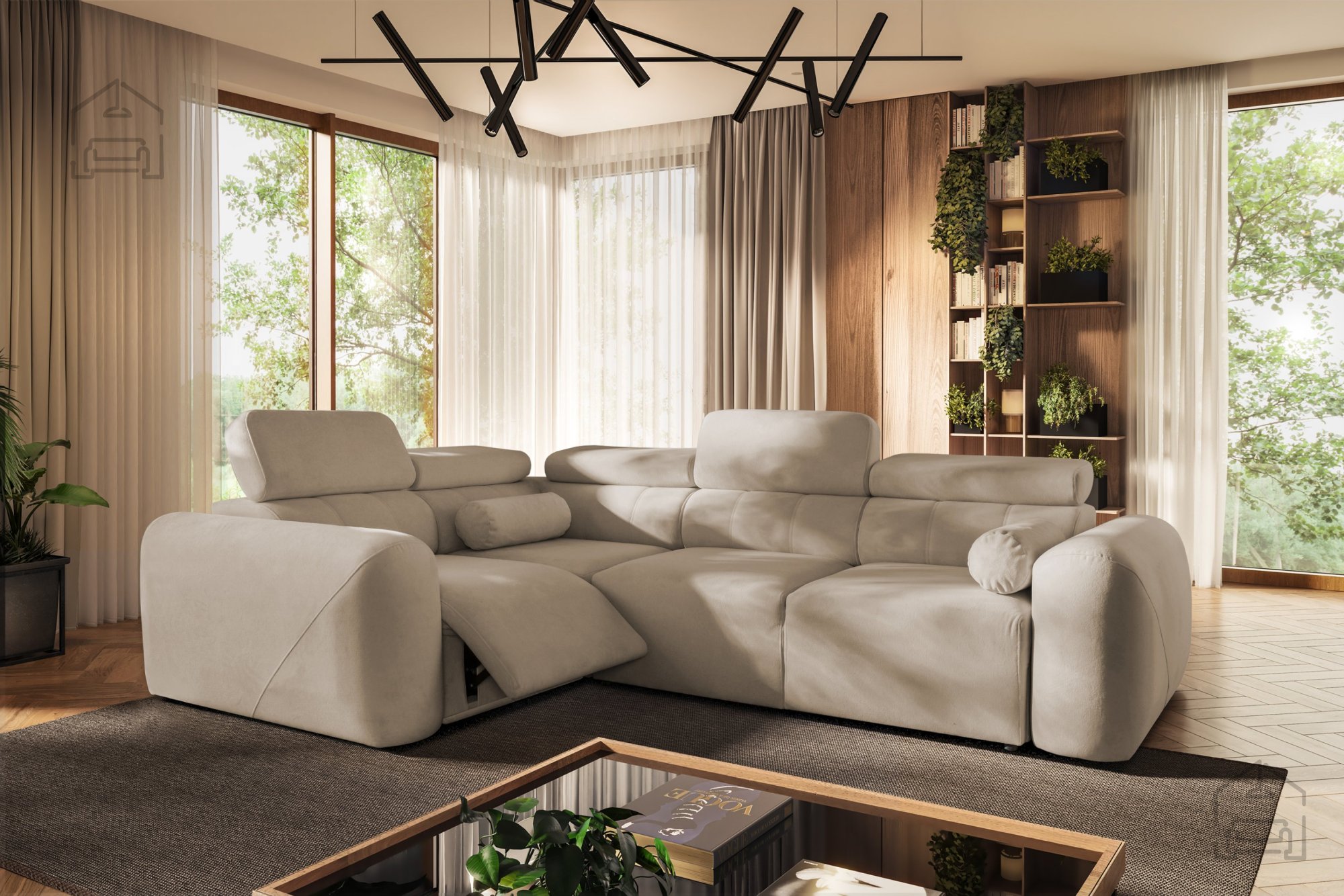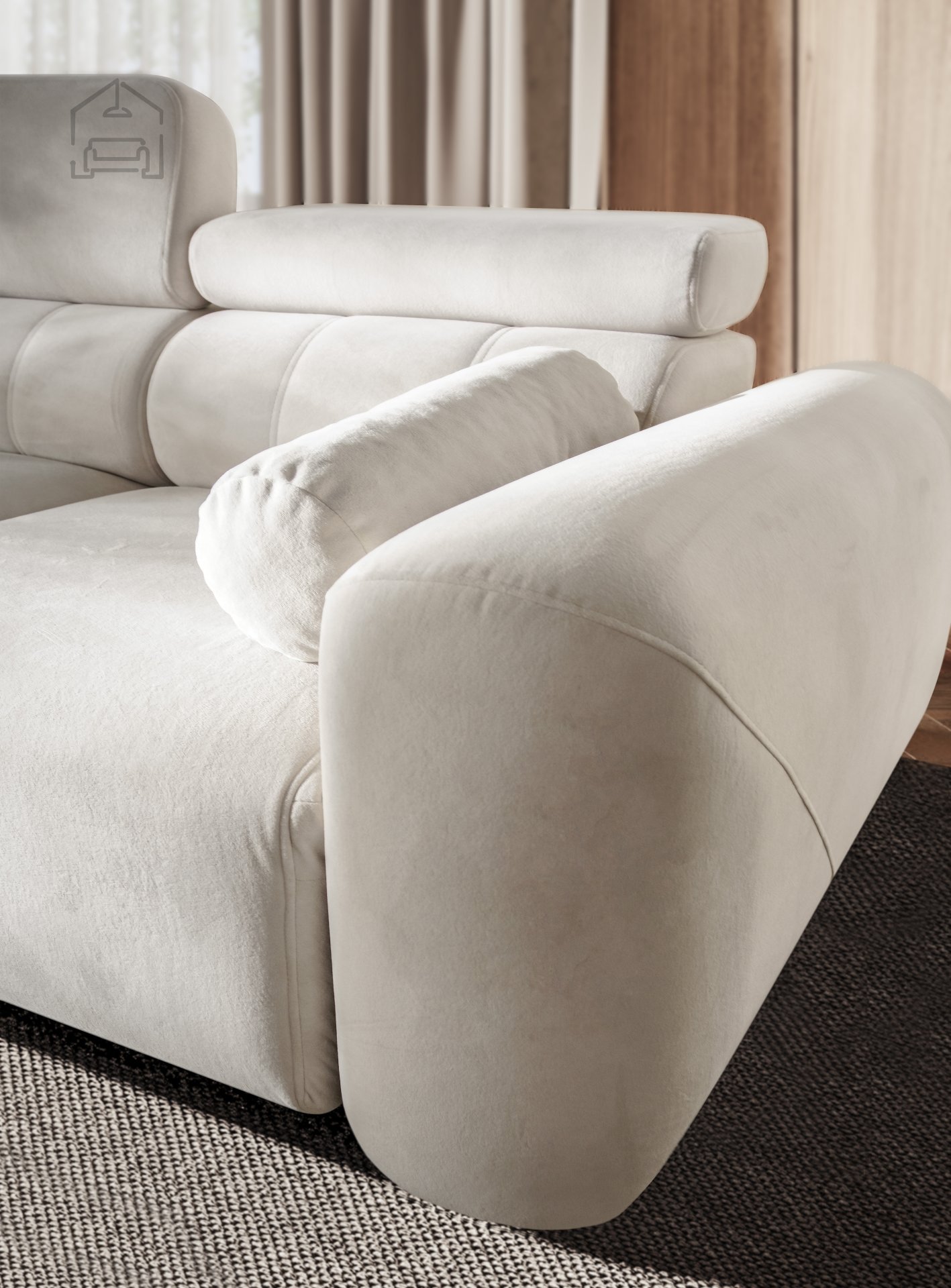 Volare II Mix ist nicht nur ein ästhetisches Möbelstück, sondern bietet auch zahlreiche praktische Funktionen. Die eingebaute Bettwäsche-Schublade bietet zusätzlichen Stauraum für Bettwäsche oder Decken, was besonders in kleineren Wohnungen praktisch ist. Die Garnitur verfügt über fünf verstellbare Kopfstützen, die eine individuelle Anpassung der Kopf- und Nackenposition ermöglichen, sowie über eine elektrisch verstellbare Fußstütze für vollständige Entspannung der Beine. Die Liegefläche ist mit einem PUMA-Automatikmechanismus ausgestattet, der das Ausziehen und Zusammenklappen des Bettes erleichtert.