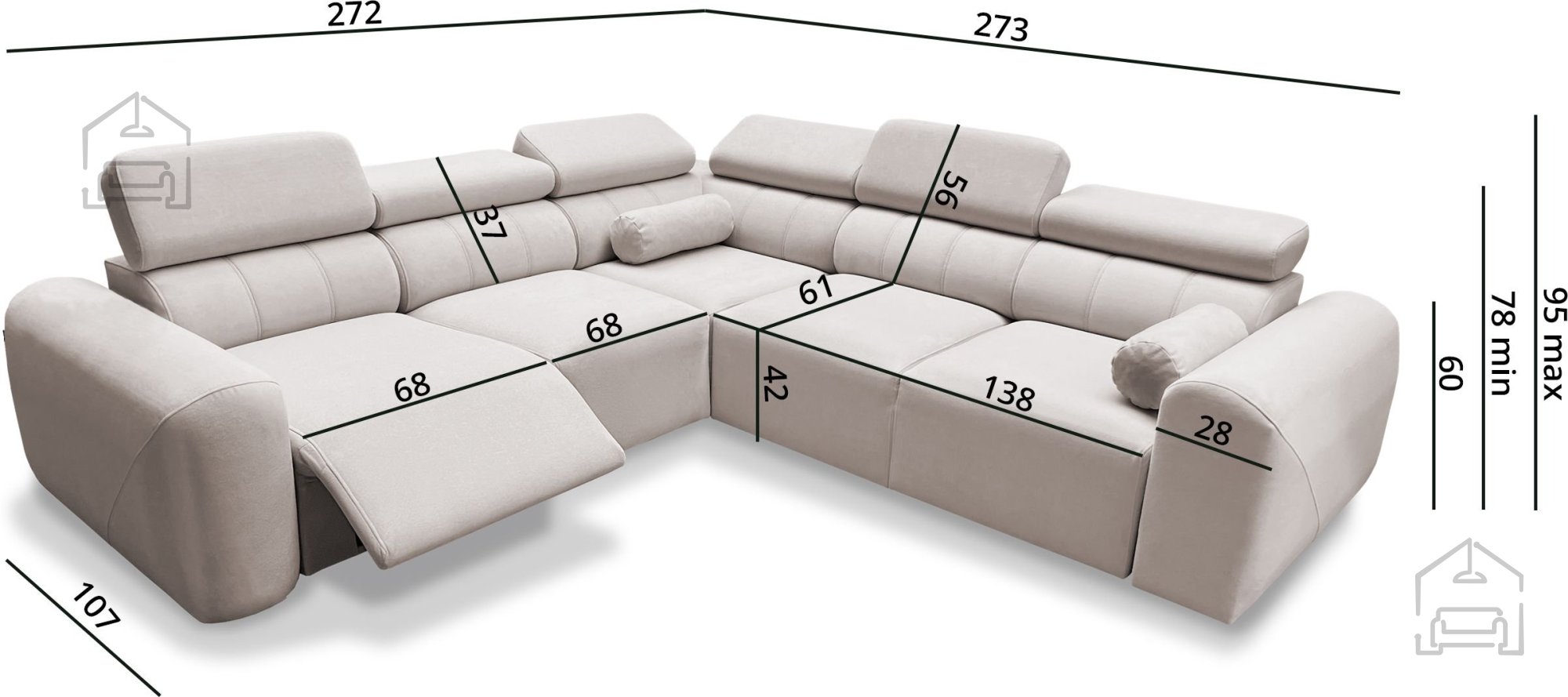 Das Modell ist in linker oder rechter Eckausführung erhältlich, was eine Anpassung an die Raumaufteilung ermöglicht. Bei der Bestellung muss die gewünschte Seite angegeben werden – von der Vorderseite der Garnitur aus gesehen. Aufgrund seines modularen Designs und seiner Funktionalität eignet sich Volare III Mix sowohl für Wohnzimmer als auch für Räume, in denen eine zusätzliche Schlafgelegenheit wichtig ist.
