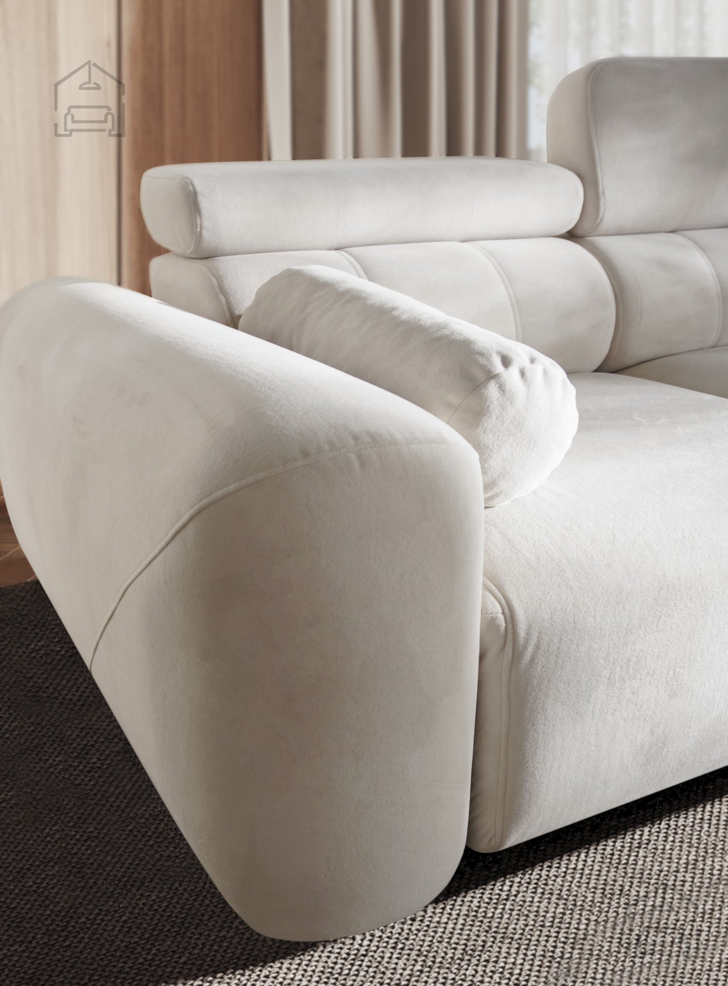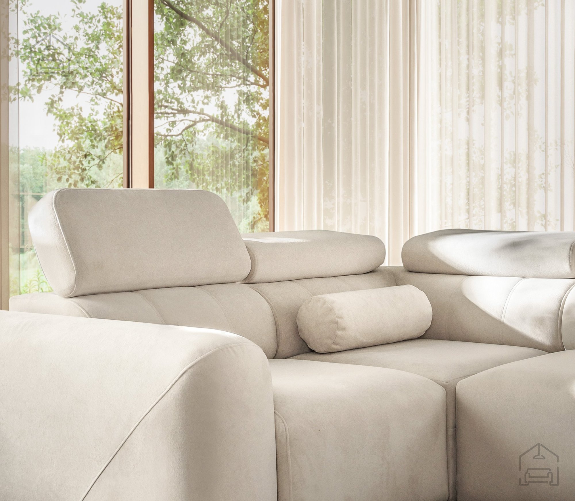 Für den Sitzkomfort sorgt ein Federkern aus T-30-Schaum mit einer Stärke von 10 cm, unterstützt durch Wellenfedern, die eine gleichmäßige Gewichtsverteilung und dauerhafte Elastizität gewährleisten. Das Modell ist serienmäßig mit einem PUMA-Automaten zum Ausziehen der Liegefläche ausgestattet. Die Garnitur umfasst außerdem sechs verstellbare Kopfstützen, die eine Anpassung des Neigungswinkels an die Wünsche des Benutzers ermöglichen.