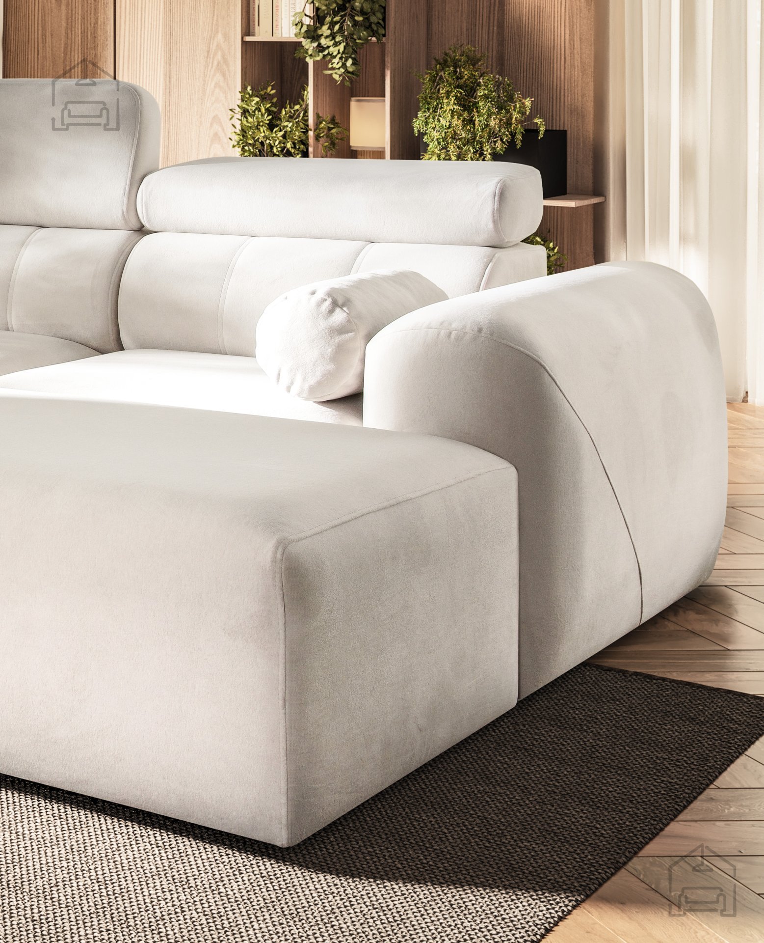 Es ist zu beachten, dass keine Ausführung in Kunstleder möglich ist. Das Modell ist in einer linken oder rechten Ausführung erhältlich, die bei der Bestellung festgelegt werden muss – die Seite wird bestimmt, wenn man der Garnitur gegenübersteht.
