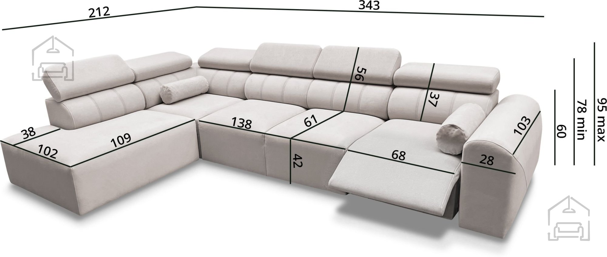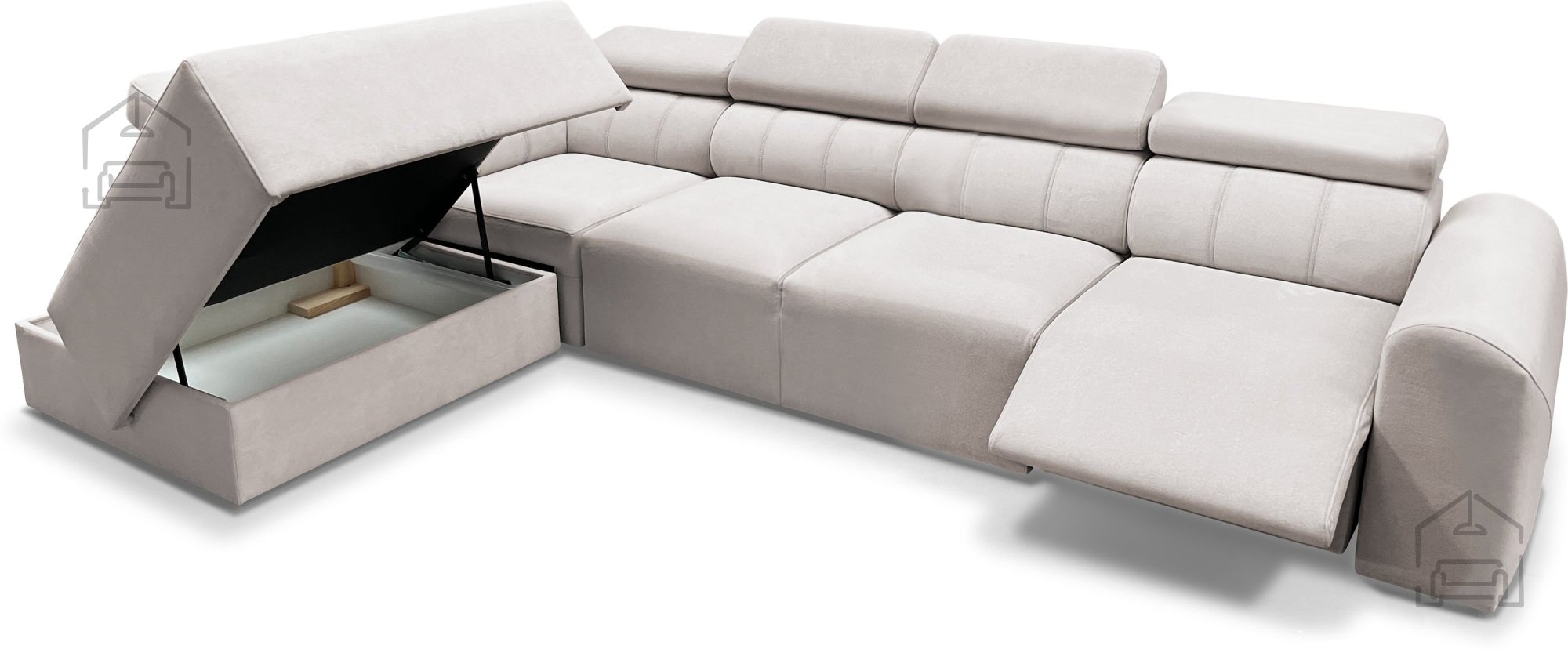 Volare XI Mix ist nicht nur ein ästhetisches Möbelstück, sondern bietet zahlreiche praktische Funktionen. Die eingebaute Bettkasten-Schublade bietet zusätzlichen Stauraum für Bettwäsche oder Decken, was besonders in kleineren Wohnungen äußerst praktisch ist. Die Garnitur verfügt über fünf verstellbare Kopfstützen, die eine individuelle Anpassung der Kopf- und Nackenposition ermöglichen, sowie über eine elektrisch verstellbare Fußstütze für vollständige Entspannung der Beine. Die Schlaffläche ist mit einem PUMA-Automatiksystem ausgestattet, das das Ausziehen und Zusammenklappen erleichtert.