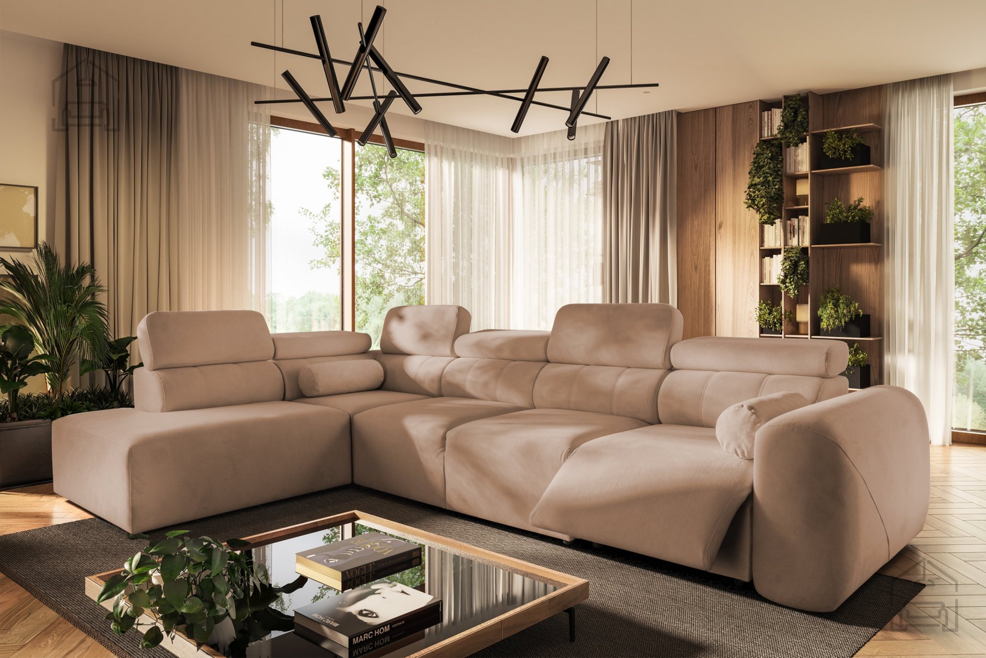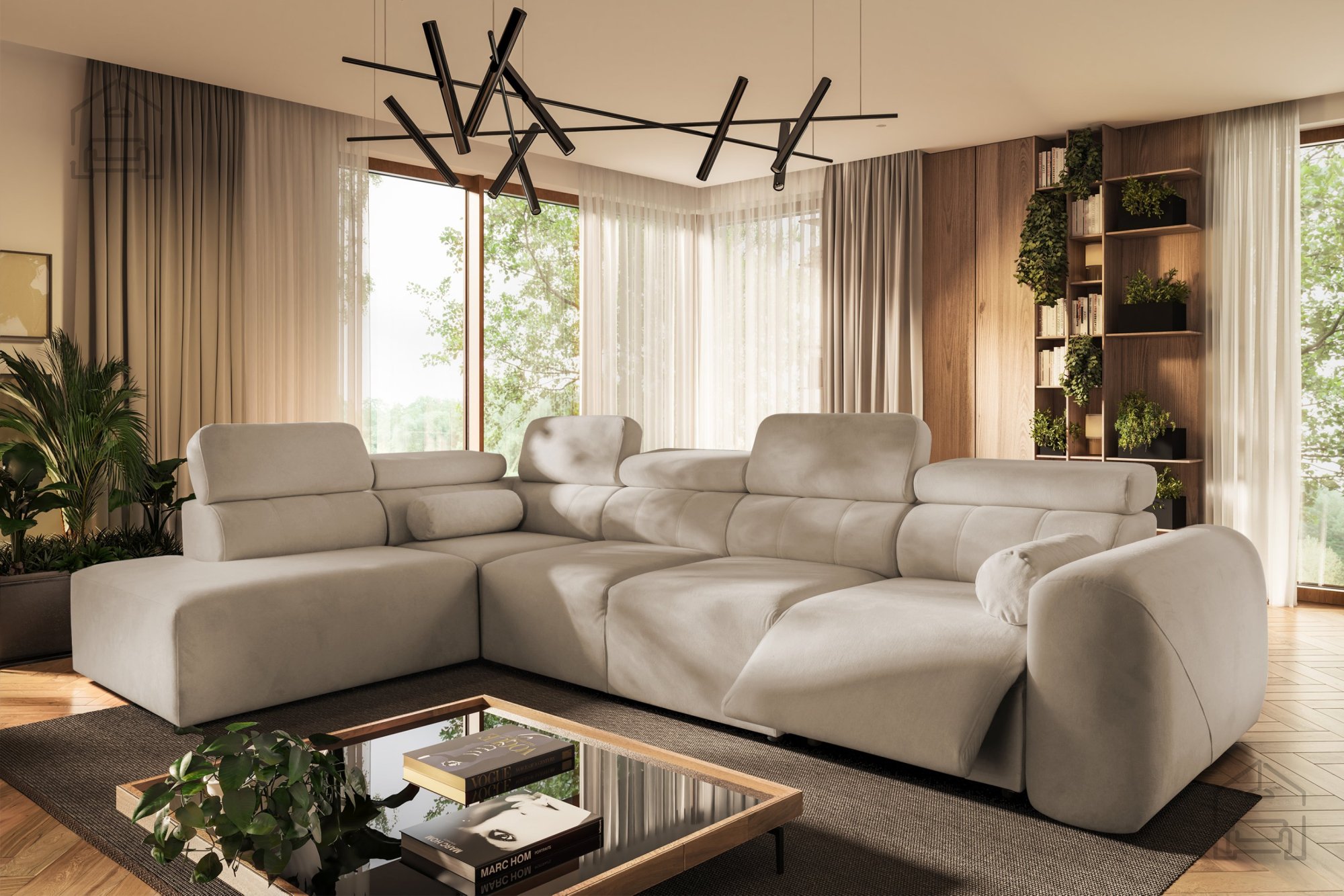 Das Modell ist in linker oder rechter Eckausführung erhältlich, was eine Anpassung an die Raumaufteilung ermöglicht. Bei der Bestellung muss die gewünschte Seite – von der Front der Garnitur aus gesehen – angegeben werden. Aufgrund seines modularen Designs und seiner Funktionalität eignet sich der Volare XI Mix sowohl für Wohnzimmer als auch für Räume, in denen eine zusätzliche Schlafmöglichkeit wichtig ist.