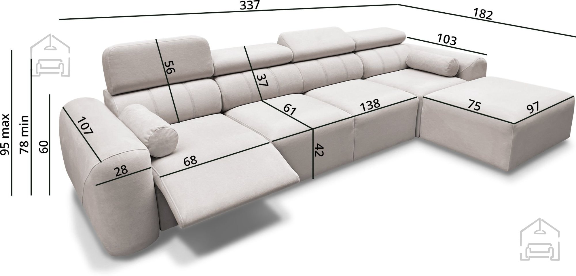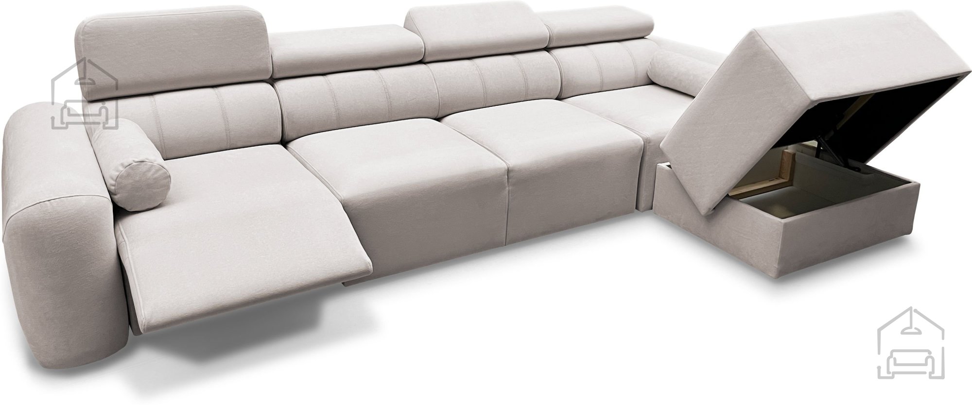 Das Modell ist in linker oder rechter Eckausführung erhältlich, was eine Anpassung an die Raumaufteilung ermöglicht. Bei der Bestellung muss die gewünschte Seite angegeben werden – von der Vorderseite der Garnitur aus betrachtet. Aufgrund seines modularen Designs und seiner Funktionalität eignet sich Volare XII Mix sowohl für Wohnzimmer als auch für Räume, in denen eine zusätzliche Schlafgelegenheit wichtig ist.