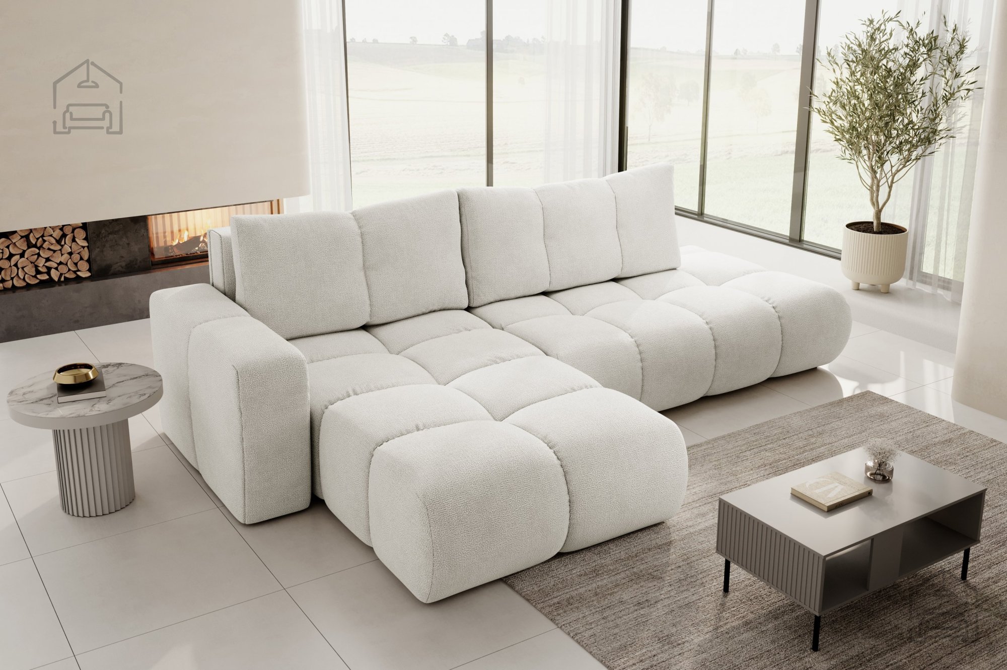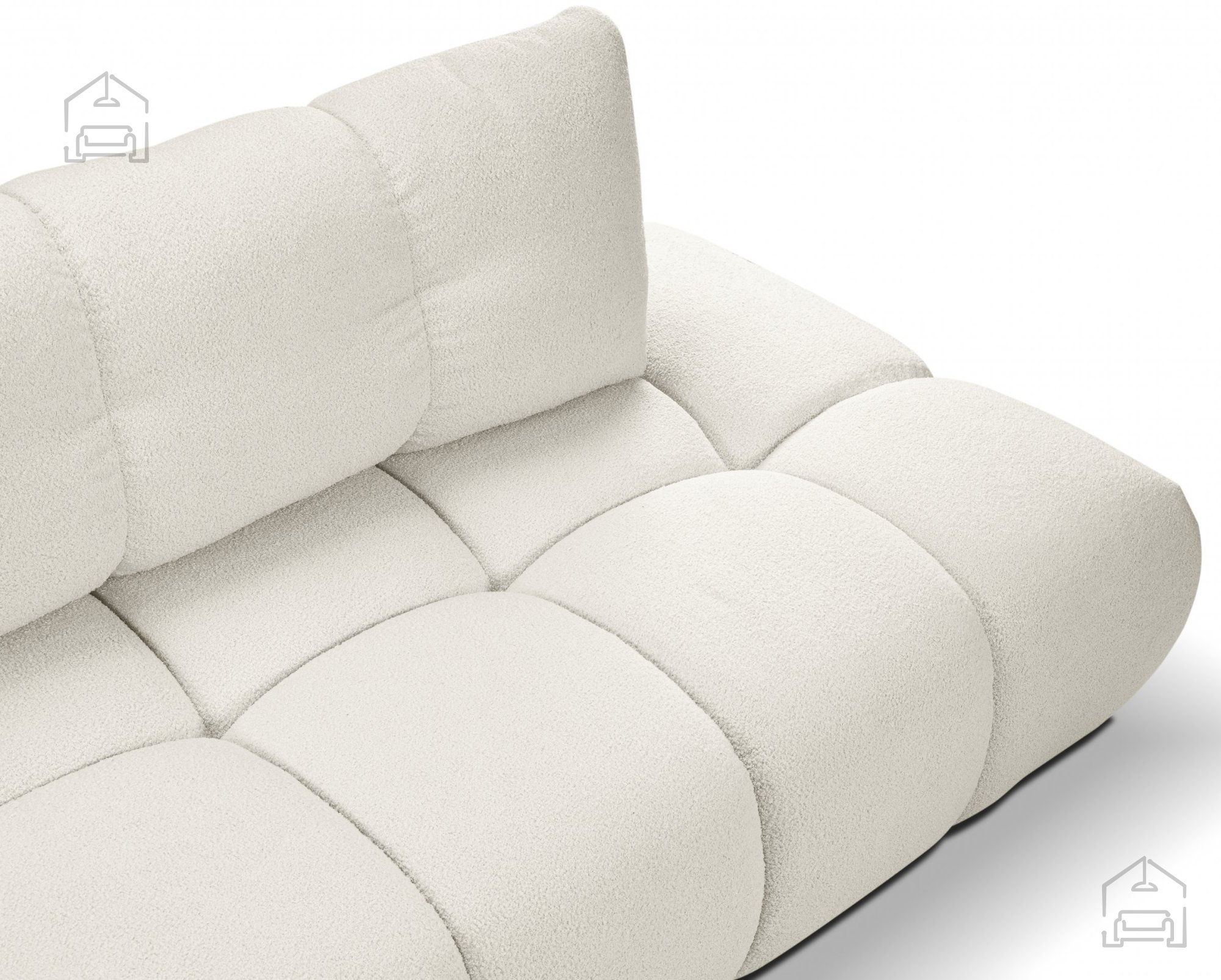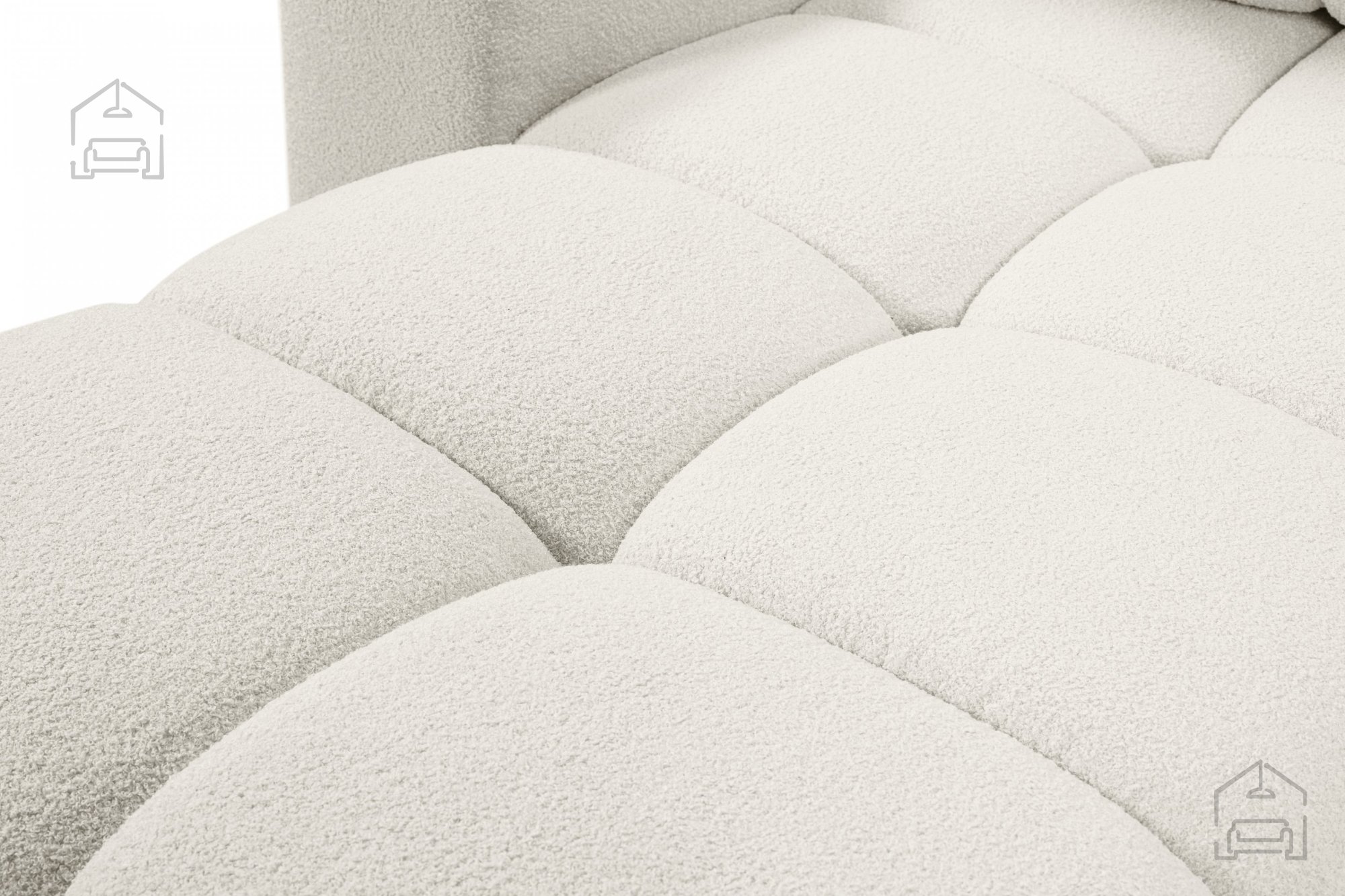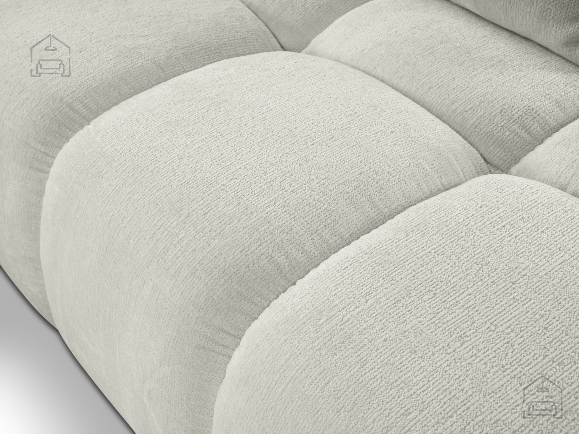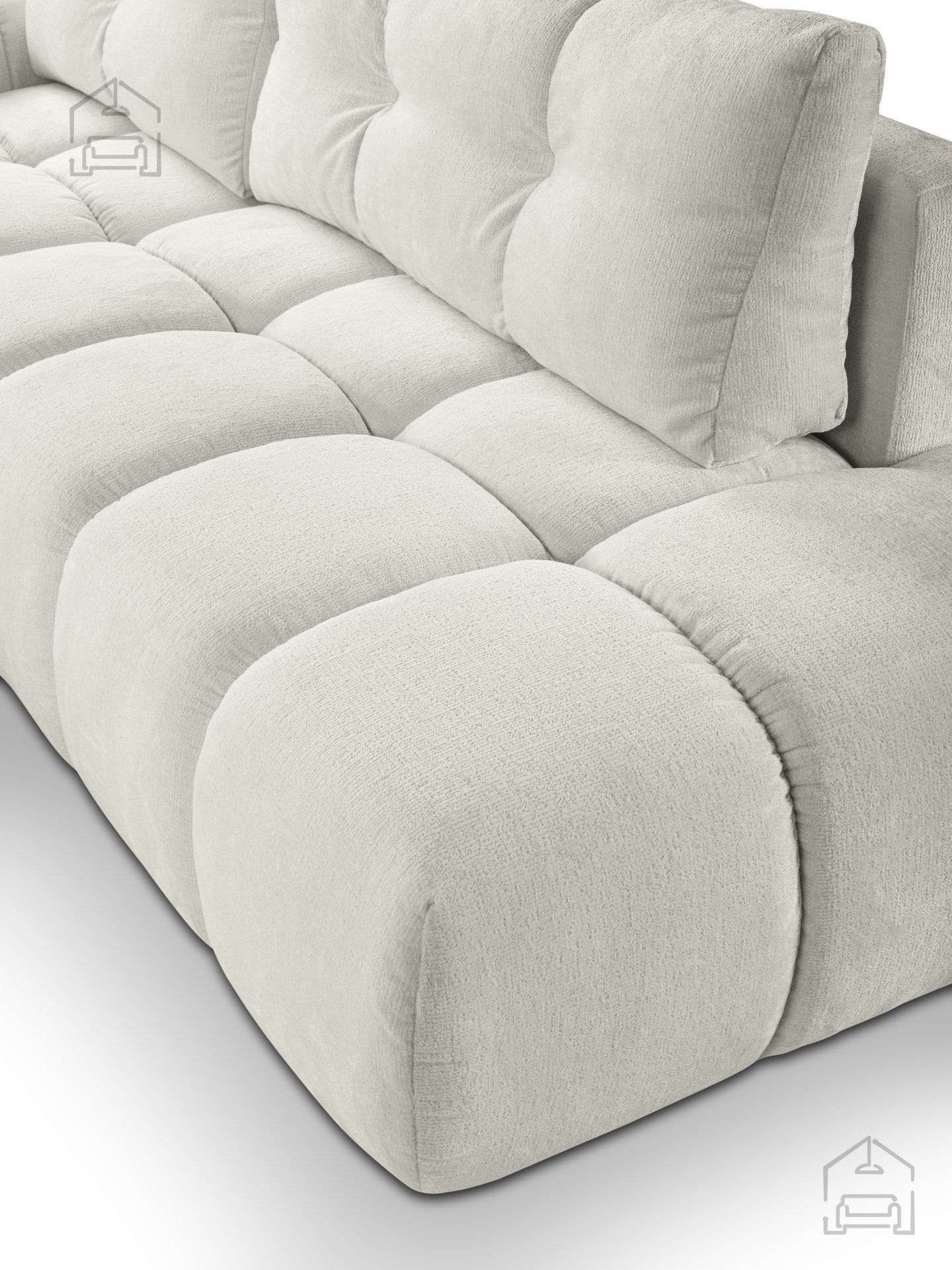 Die Ecksofa-Garnitur Soho bringt eine moderne Atmosphäre in Ihr Wohnzimmer mit ihren charakteristischen runden Formen. Dieses Set bietet hohen Komfort und einen einzigartigen Charakter mit seinen dekorativen Nähten und weichen Rückenpolstern. Hier sind ihre wichtigsten Merkmale: