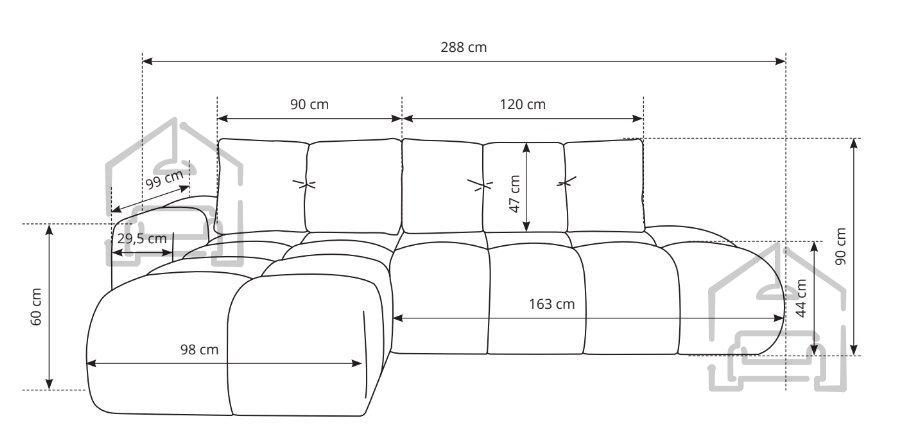 Die bei der Herstellung von Sofas und Sitzgarnituren verwendeten Materialien sind verschiedene Arten von Polyurethanschäumen, Synthepon, Viskolatex usw. Es handelt sich um Produkte mit einem hohen Kompressions- und Elastizitätskoeffizienten, daher behält sich der Hersteller das Recht auf eine negative und positive Toleranz von +/- 2% für Breite und Länge vor.