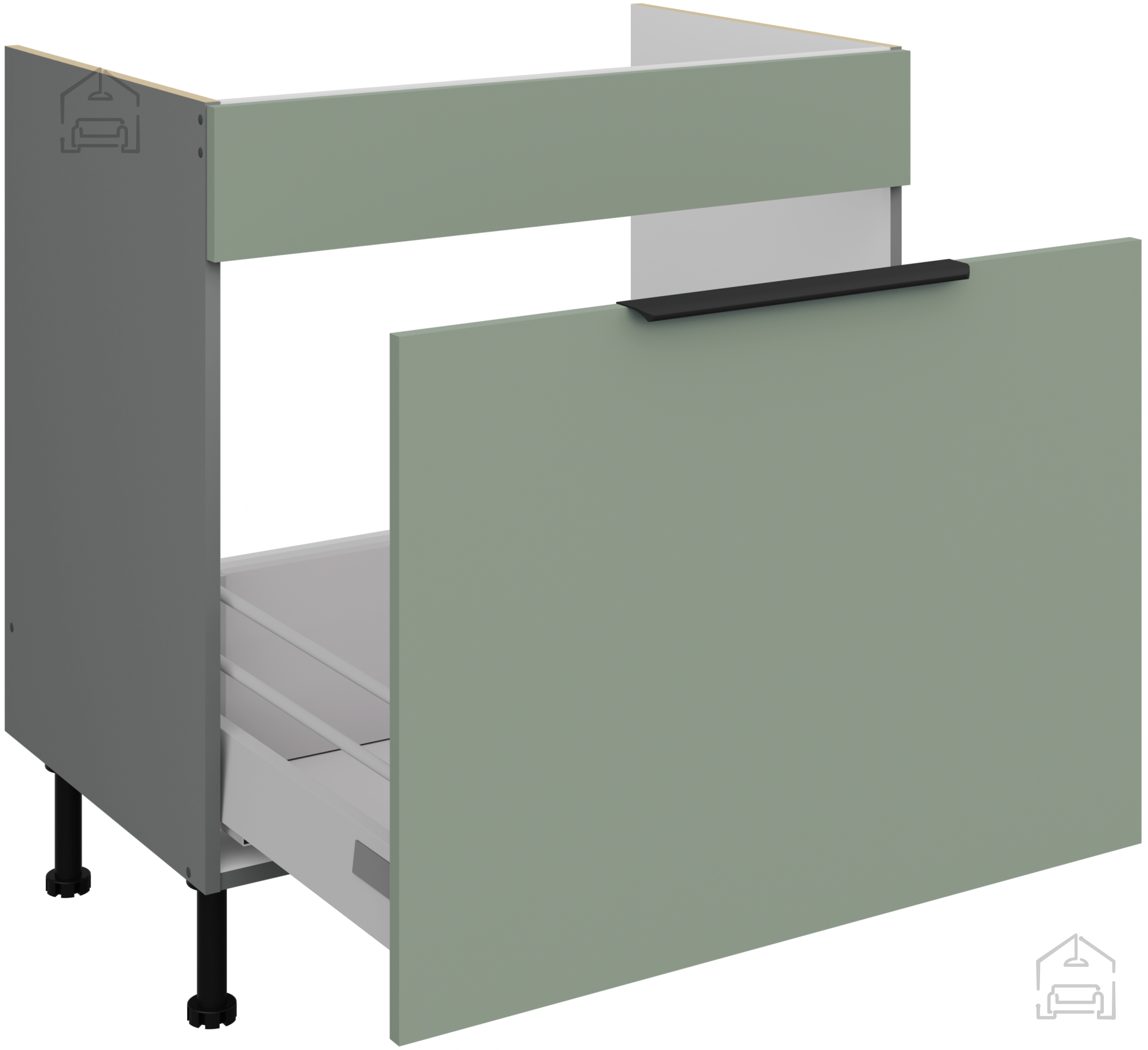 Das Grundmaterial des Küchenensembles Aria ist eine laminierte Platte mit einer Stärke von 16 mm, die eine solide Konstruktion und Widerstandsfähigkeit gegen den täglichen Gebrauch ermöglicht. Die Oberfläche der Platten ist glatt und kratzfest, was die Reinigung erleichtert und das ursprüngliche Aussehen auch nach Jahren der Nutzung bewahrt. Der Rahmen besteht aus Spanplatte, was zusätzlich zur Stabilität und Langlebigkeit der gesamten Struktur beiträgt. Alle Elemente sind präzise bearbeitet, und die Kanten sind mit einem hochwertigen Band versehen, das das Eindringen von Feuchtigkeit verhindert.