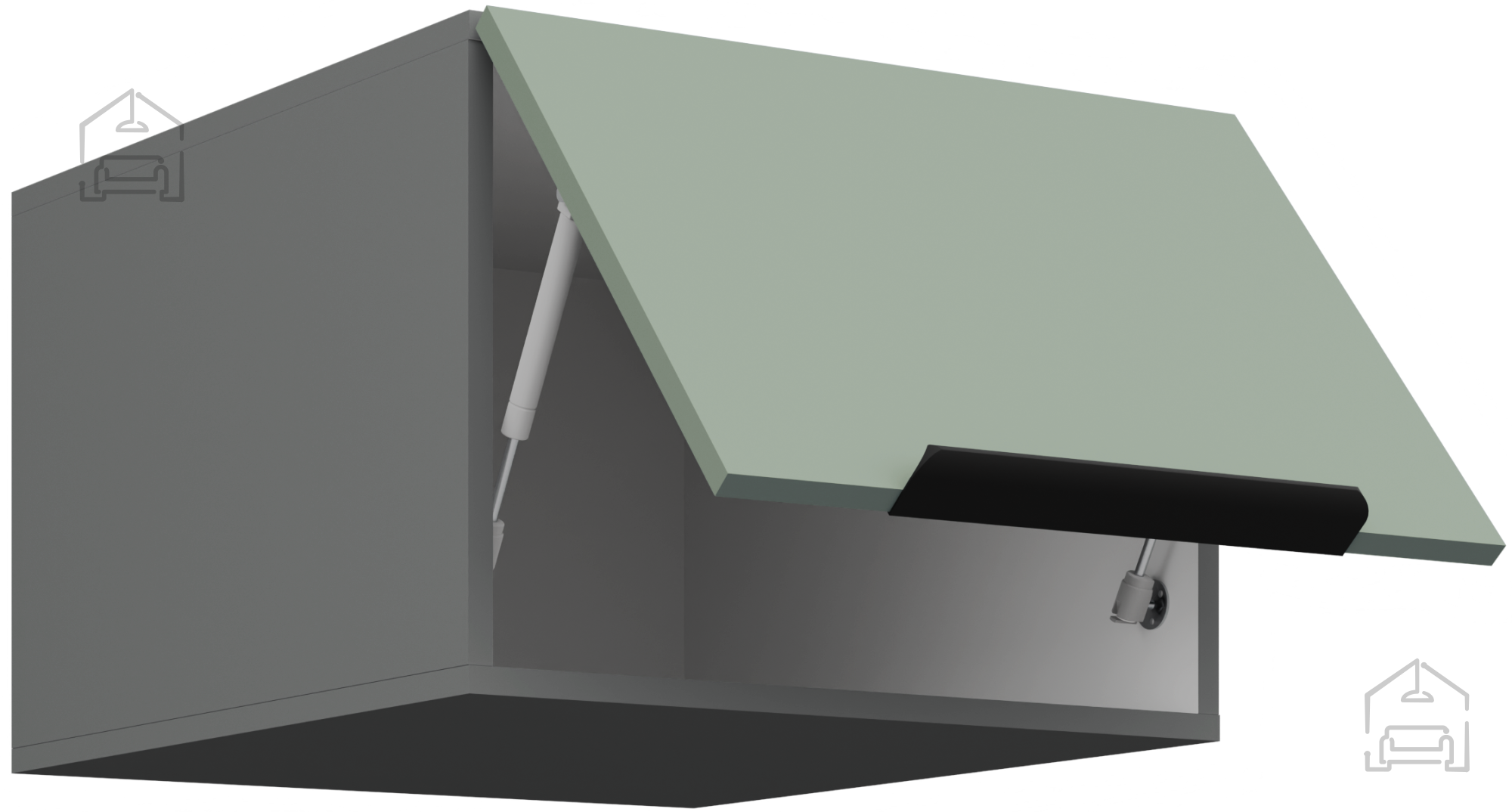 Das Grundmaterial der Küchenzeile Aria ist eine laminierte Platte mit einer Stärke von 16 mm, die eine stabile Konstruktion und Widerstandsfähigkeit gegen den täglichen Gebrauch ermöglicht. Die Oberfläche der Platten ist glatt und kratzfest, was die Reinigung erleichtert und das ursprüngliche Aussehen auch nach Jahren der Nutzung bewahrt. Der Rahmen besteht aus Spanplatte, was zusätzlich zur Stabilität und Langlebigkeit der gesamten Struktur beiträgt. Alle Elemente sind präzise bearbeitet, und die Kanten sind mit einem hochwertigen Band abgeschlossen, das das Eindringen von Feuchtigkeit verhindert.