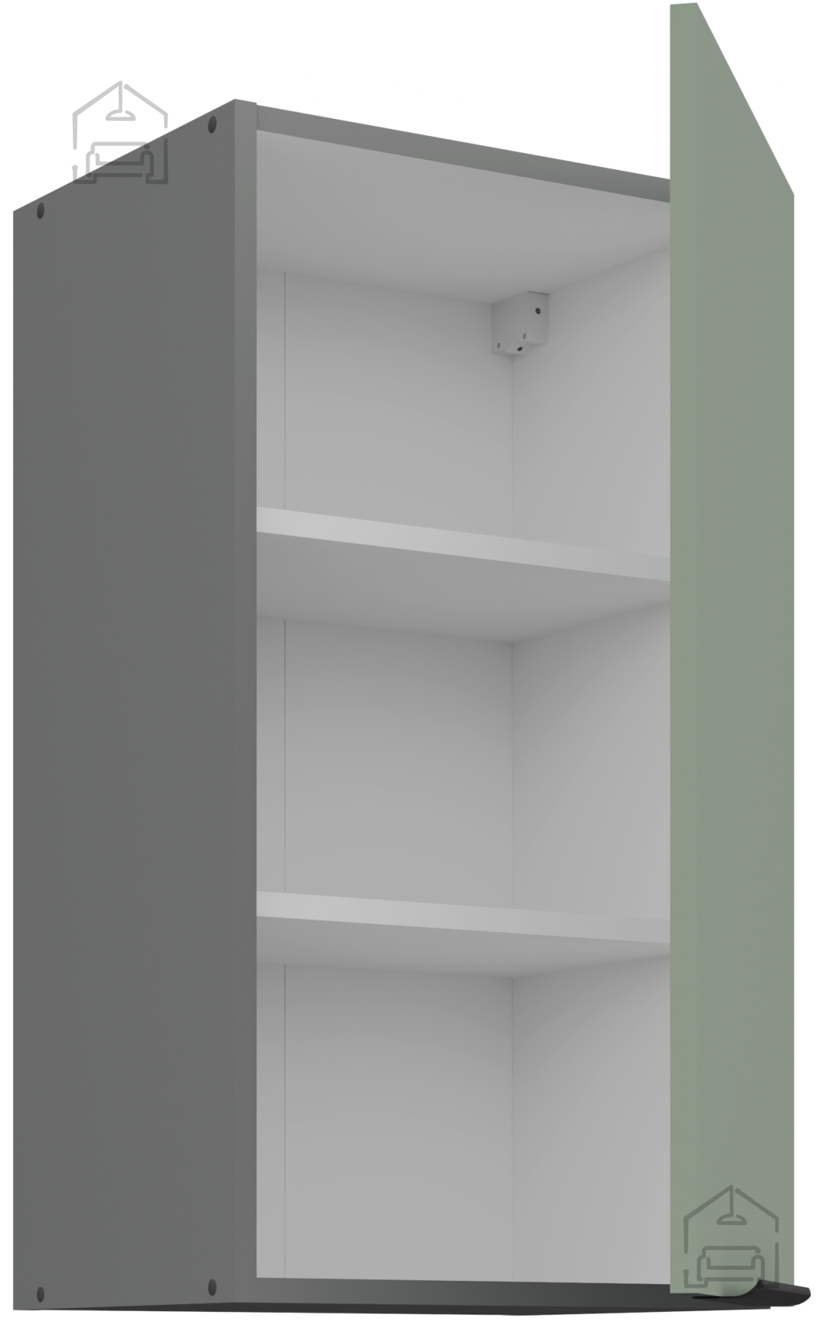 Das Grundmaterial des Küchenensembles Aria ist eine laminierte Platte mit einer Stärke von 16 mm, die eine stabile Konstruktion und Widerstandsfähigkeit gegen den täglichen Gebrauch ermöglicht. Die Oberfläche der Platten ist glatt und kratzfest, was die Reinigung erleichtert und das ursprüngliche Aussehen auch nach Jahren der Nutzung bewahrt. Der Rahmen besteht aus Spanplatte, was zusätzlich zur Stabilität und Langlebigkeit der gesamten Struktur beiträgt. Alle Elemente sind präzise bearbeitet, und die Kanten sind mit einem hochwertigen Band abgeschlossen, das das Eindringen von Feuchtigkeit verhindert.