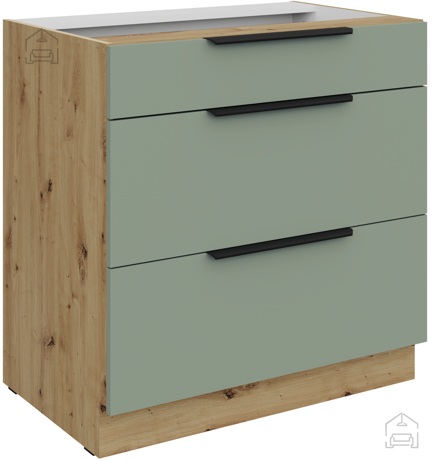 Die Farbe des Produkts – Grün in Kombination mit dem Holzton der Artisan-Eiche – bringt ein Gefühl von Natürlichkeit und Frische in den Raum. Eine solche Farbkombination wirkt beruhigend und passt hervorragend zu verschiedenen Einrichtungsstilen, von minimalistischen bis zu klassischen Küchen. Das Ensemble Aria kann mit verschiedenen Haushaltsgeräten und Zubehörteilen ergänzt werden, was die Schaffung eines individuell angepassten Ambientes ermöglicht.