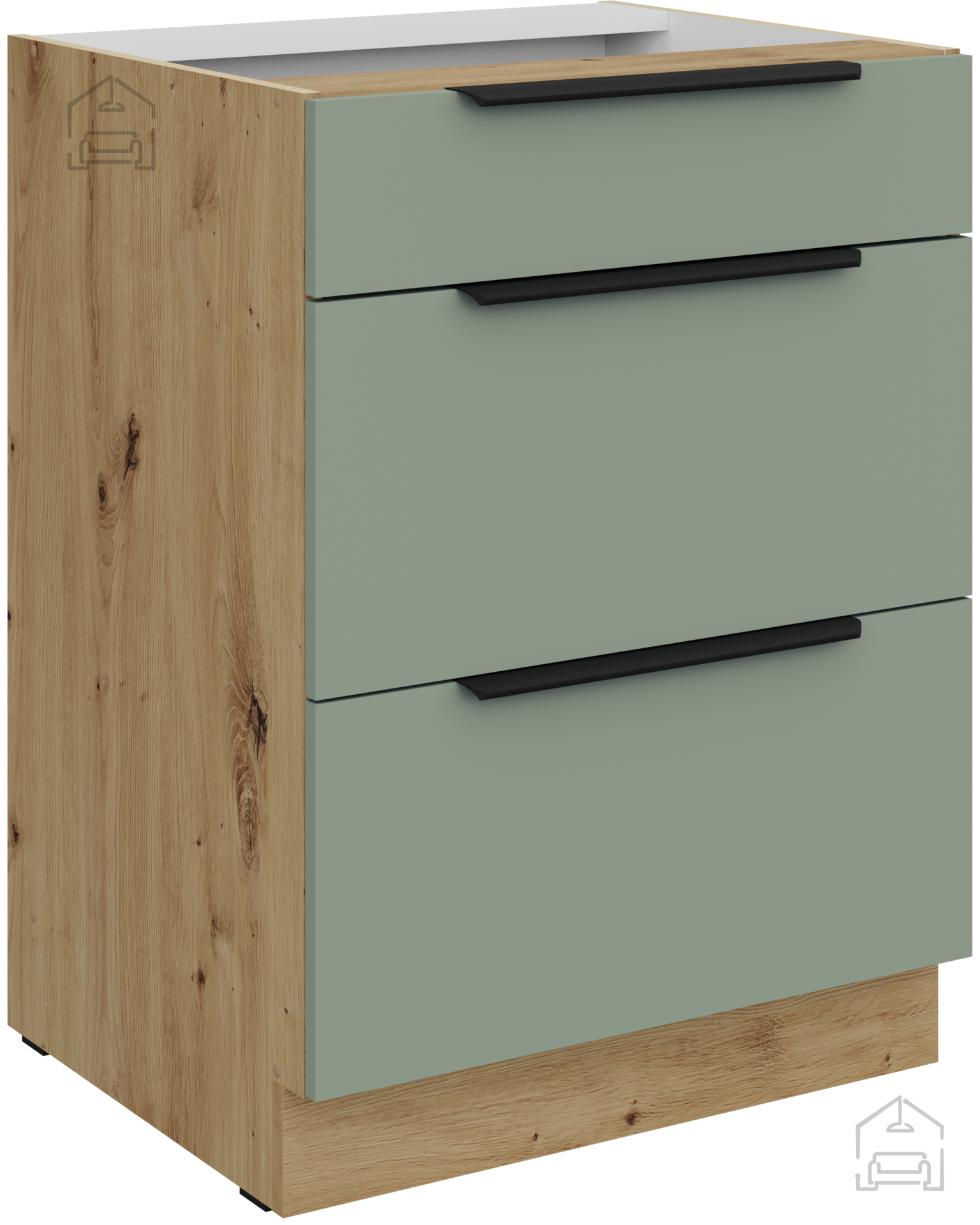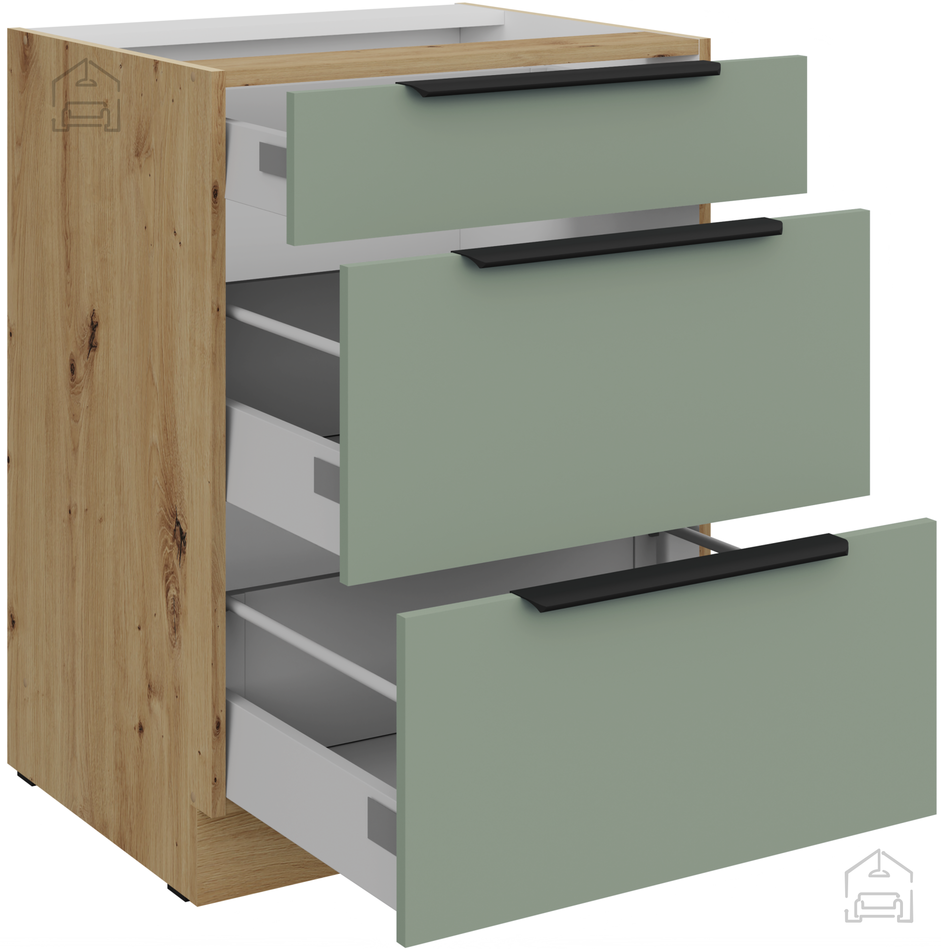 Die Farbe des Produkts – grün in Kombination mit dem Holzton des Eichenholzes Artisan – bringt ein Gefühl von Natürlichkeit und Frische in den Raum. Eine solche Farbkombination wirkt beruhigend und passt hervorragend zu verschiedenen Einrichtungsstilen, von minimalistischen bis hin zu klassischen Küchen. Das Ensemble Aria kann mit verschiedenen Haushaltsgeräten und Accessoires ergänzt werden, was die Schaffung eines individuell angepassten Ambientes ermöglicht.