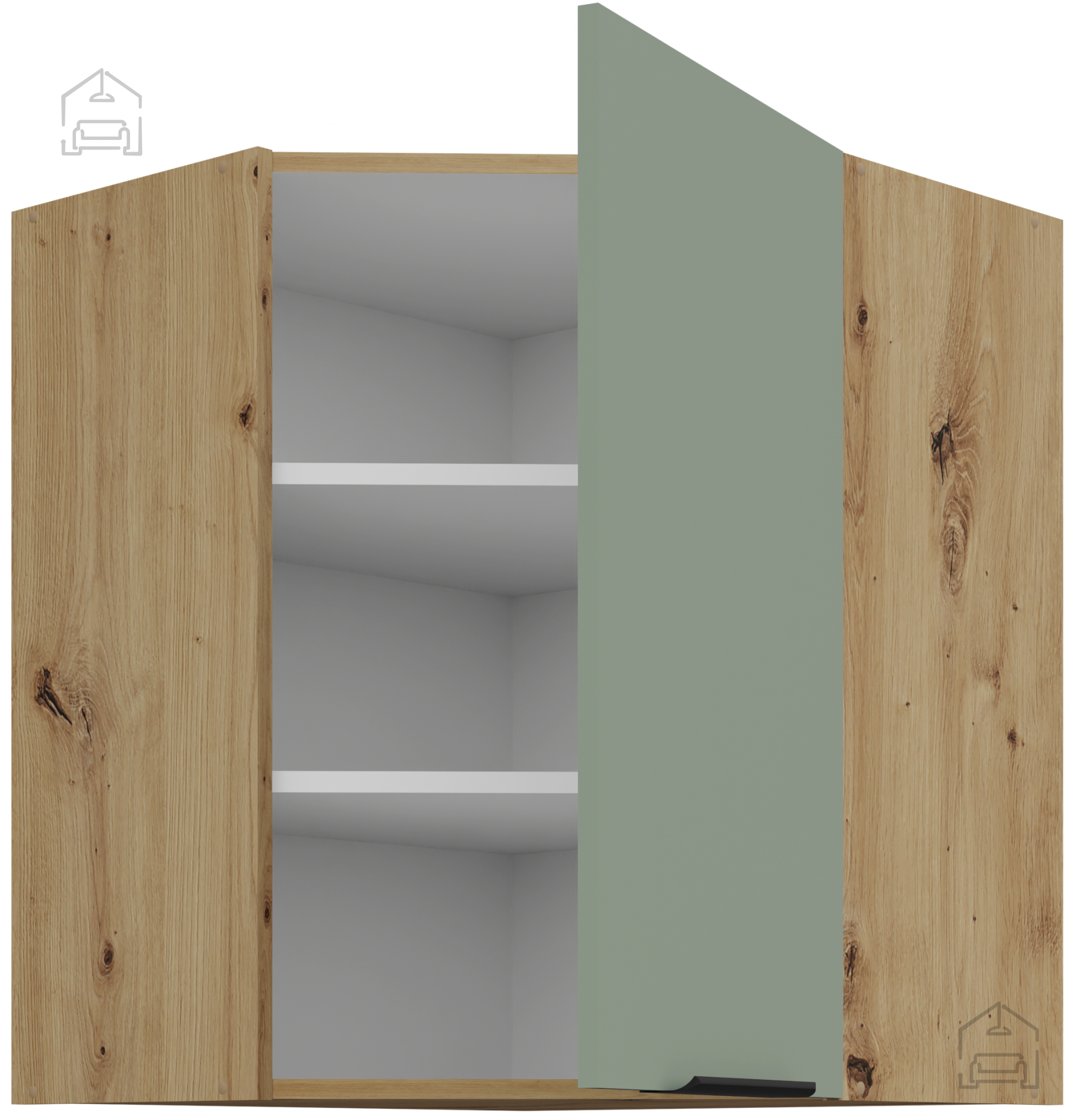 Die Farbe des Produkts – Grün in Kombination mit dem Holzton der Artisan-Eiche – bringt ein Gefühl von Natürlichkeit und Frische in den Raum. Eine solche Farbkombination wirkt beruhigend und passt hervorragend zu verschiedenen Einrichtungsstilen, von minimalistischen bis hin zu klassischen Küchen. Das Set Aria kann mit verschiedenen Haushaltsgeräten und Accessoires ergänzt werden, was die Schaffung eines individuell angepassten Ambientes ermöglicht.