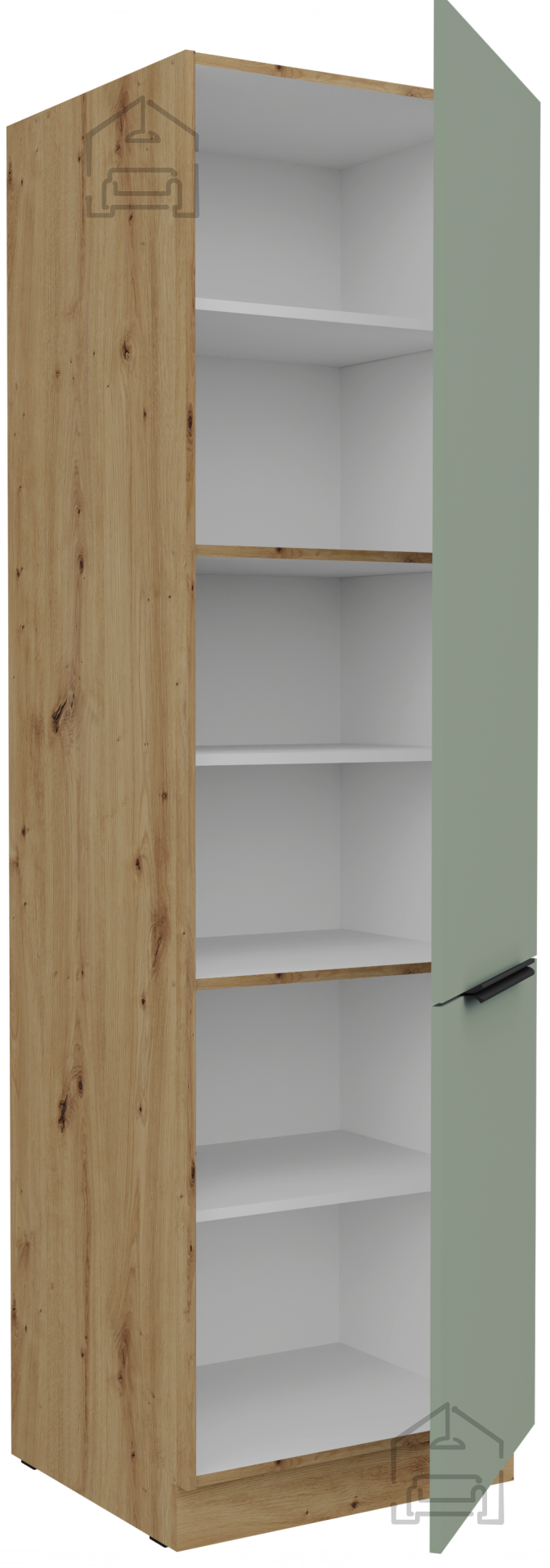 Die Farbe des Produkts – Grün in Kombination mit dem Holzton des Eichenholzes Artisan – bringt ein Gefühl von Natürlichkeit und Frische in den Raum. Eine solche Farbkombination wirkt beruhigend und passt hervorragend zu verschiedenen Einrichtungsstilen, von minimalistischen bis zu klassischen Küchen. Das Set Aria kann mit verschiedenen Haushaltsgeräten und Zubehör ergänzt werden, was die Schaffung eines individuell angepassten Ambientes ermöglicht.