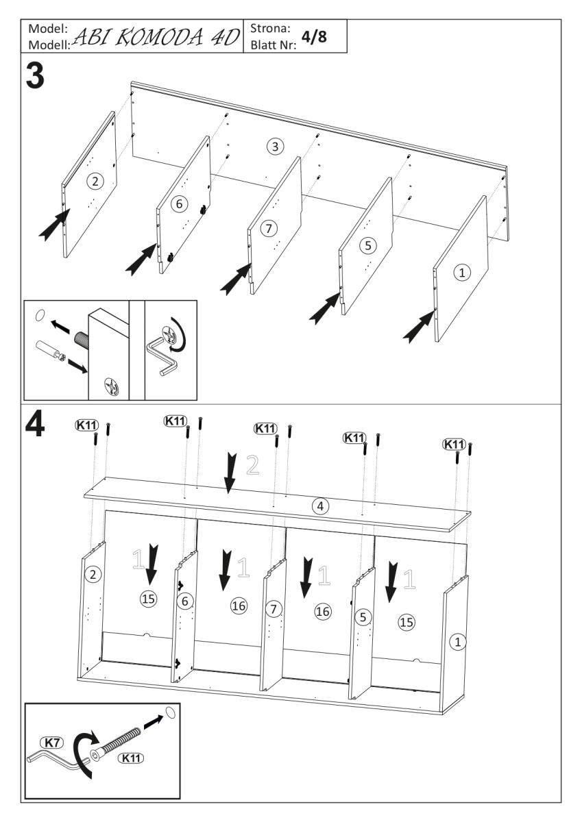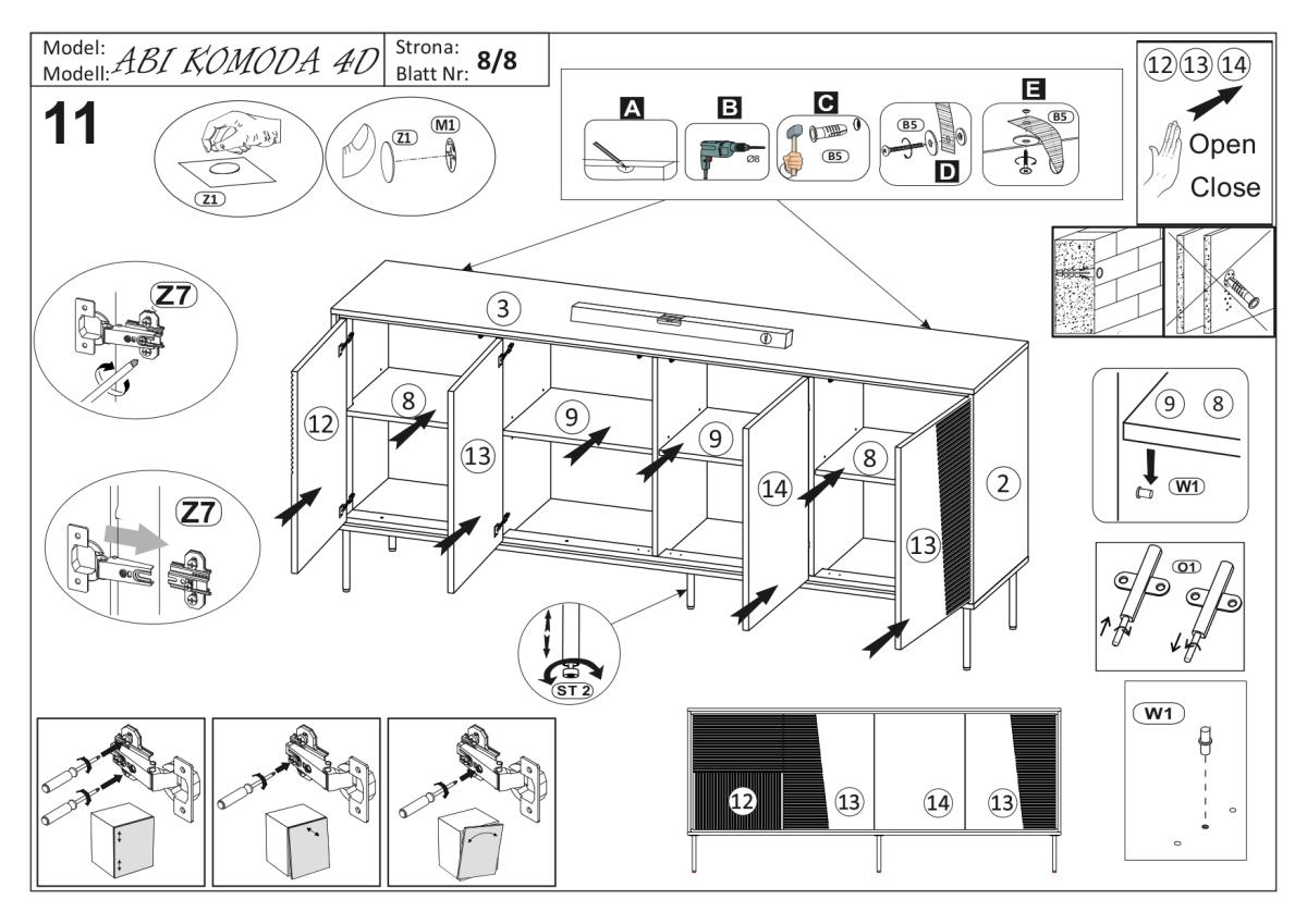 Bei der Herstellung der Kommode Abi hat Halmar hochwertige Materialien verwendet, die eine lange Lebensdauer und einfache Pflege gewährleisten. Der Korpus besteht aus einer laminierten Spanplatte mit einer Stärke von 16 mm, die kratzfest und leicht zu reinigen ist. Die Frontplatten aus MDF-Material mit einer Stärke von 18 mm verleihen ein elegantes Aussehen und Festigkeit. Die Kanten sind mit einem 0,45 mm starken ABS-Band versehen, was die Stoßfestigkeit erhöht und das Ablösen der Oberfläche verhindert. Diese Materialkombination sorgt für eine stabile Konstruktion und bewahrt gleichzeitig ein ästhetisch vollendetes Erscheinungsbild, das auch nach jahrelangem Gebrauch makellos bleibt.