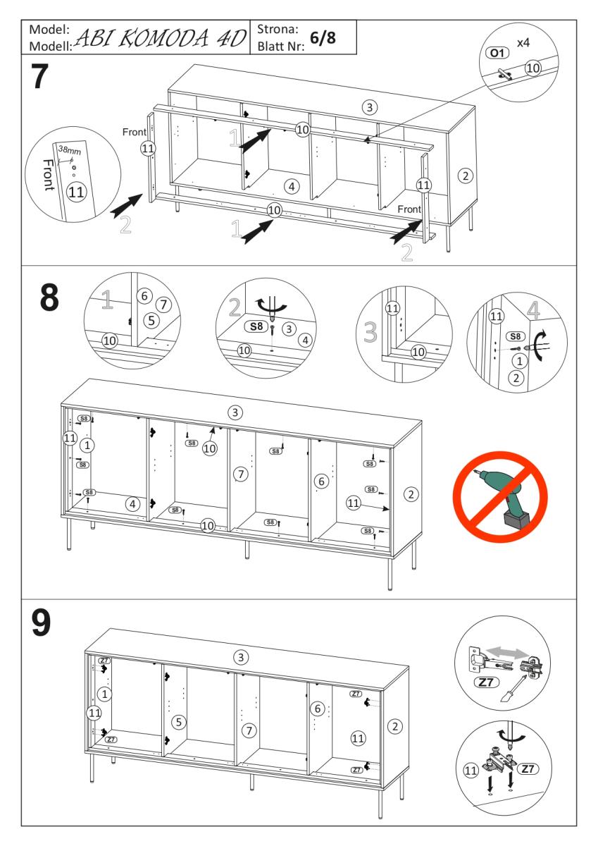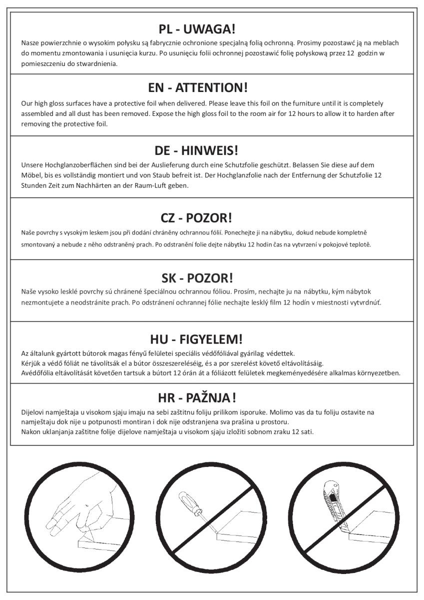 Die Reinigung und Pflege der Kommode Abi ist dank der hochwertigen Materialien einfach. Laminierte Spanplatten- und MDF-Oberflächen lassen sich leicht mit einem weichen, leicht feuchten Tuch abwischen. Es wird empfohlen, auf den Einsatz von Scheuermitteln oder groben Schwämmen zu verzichten, um die glänzende und matte Oberfläche unversehrt zu erhalten. Die Metallbeine können mit einem trockenen oder feuchten Tuch gereinigt werden, wodurch ihr ursprüngliches Aussehen bewahrt und die Oberflächenbeschichtung geschützt wird.