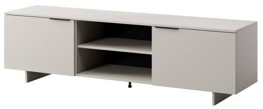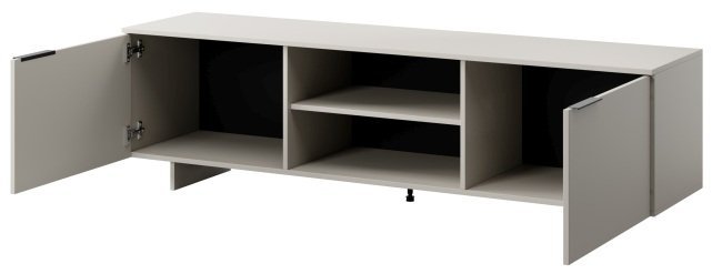 Die TV-Kommode Alma 2D1P in der Farbe Kaschmir ist ein gelungenes Beispiel für modernes Wohndesign, das minimalistisches Aussehen mit praktischer Alltagstauglichkeit verbindet. Mit einer Breite von 180 cm, einer Höhe von 55 cm und einer Tiefe von 41,5 cm bietet sie ausreichend Platz für größere Fernseher sowie viel Stauraum für alles, was Sie im Wohnzimmer gerne griffbereit haben. Gefertigt aus einer hochwertigen, 16 mm starken laminierten Platte, überzeugt sie durch Stabilität, Langlebigkeit und pflegeleichte Oberflächen.