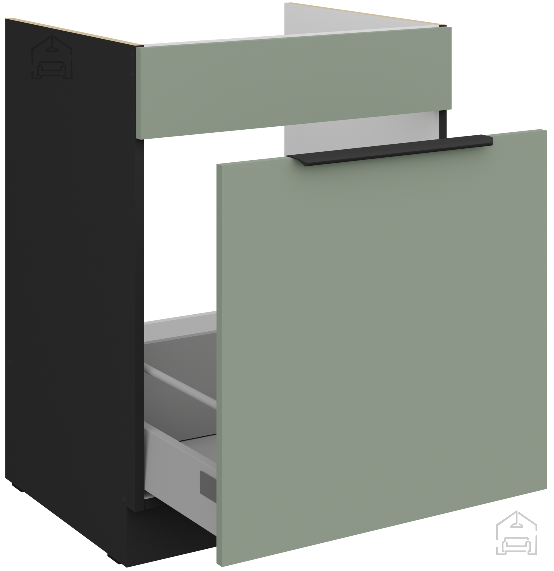 Die laminierte Oberfläche ist beständig gegen Flecken, Wasser und gelegentliche mechanische Belastungen, daher ist die Küche Aria leicht zu reinigen. Ein weiches Tuch und ein mildes Reinigungsmittel genügen. Die Kanten der Elemente sind präzise verarbeitet, was das Eindringen von Feuchtigkeit verhindert und die Lebensdauer verlängert. Dank der Soft‑Close‑Systeme und hochwertigen Beschläge wird die Küche ihre Funktionalität und ihr Aussehen auch bei täglicher intensiver Nutzung lange bewahren.