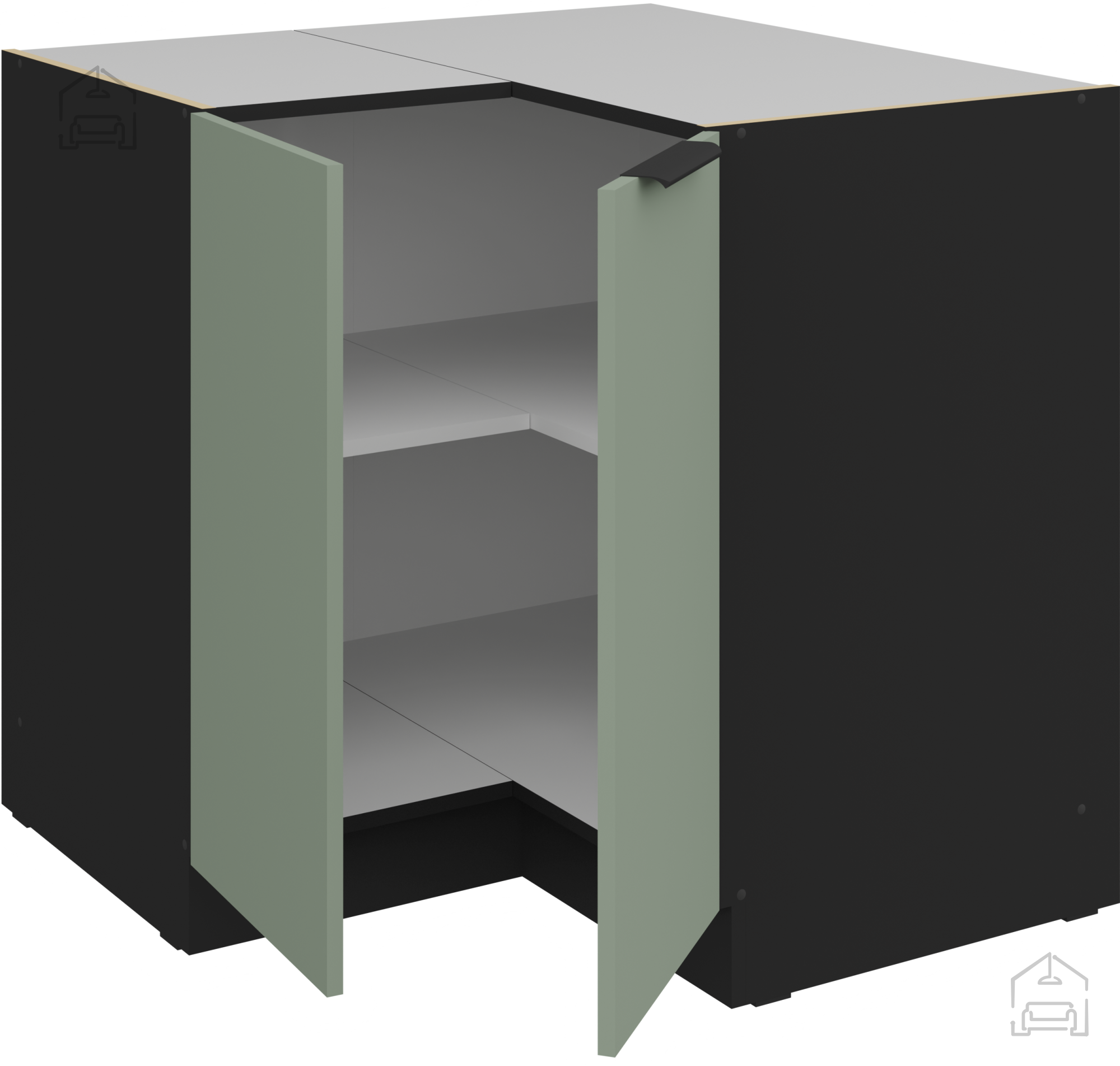 Die Arbeitsplatte mit der Bezeichnung 38‑6499 Marmor Roma sorgt für einen eleganten Abschluss des Gesamtbildes. Das Marmormuster harmoniert schön mit den farbigen Fronten und verleiht einen Hauch von Prestige. Die Oberfläche ist feuchtigkeitsbeständig und leicht zu reinigen, was eine unbeschwerte Zubereitung von Speisen ermöglicht. Die Küchenelemente sind mit ästhetisch und praktisch gestalteten Griffen Edge UA‑HEXA aus schwarz‑aluminiumhaltiger Legierung ausgestattet. Die Griffe sind in verschiedenen Abständen erhältlich – von 64 mm bis 320 mm – was eine Anpassung an verschiedene Tür‑ und Schubladengrößen ermöglicht.