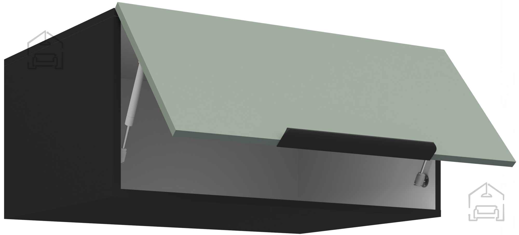Die Arbeitsplatte mit der Bezeichnung 38‑6499 Marmor Roma sorgt für einen eleganten Abschluss des Ganzen. Das Marmormuster harmoniert schön mit den farbigen Fronten und verleiht einen Hauch von Prestige. Die Oberfläche ist feuchtigkeitsbeständig und leicht zu reinigen, was eine unbeschwerte Zubereitung von Speisen ermöglicht. Die Küchenelemente sind mit ästhetisch und praktisch gestalteten Griffen Edge UA‑HEXA aus schwarz‑aluminiumhaltiger Legierung ausgestattet. Die Griffe sind in verschiedenen Abständen erhältlich – von 64 mm bis 320 mm – was eine Anpassung an verschiedene Tür‑ und Schubladengrößen ermöglicht.