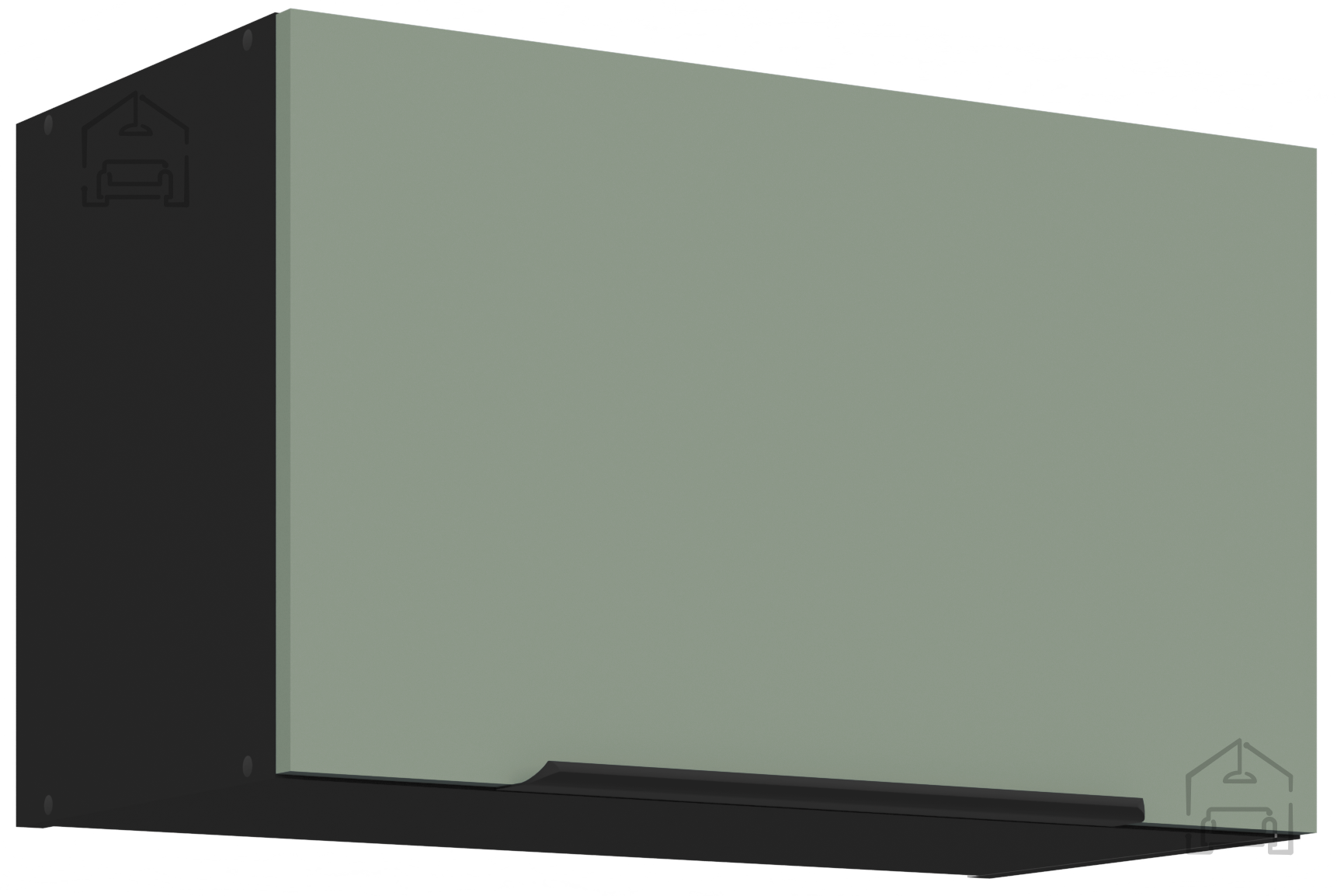 Die Arbeitsplatte mit der Bezeichnung 38‑6499 Marmor Roma sorgt für einen eleganten Abschluss des Gesamtensembles. Das Marmormuster harmoniert schön mit den farbigen Fronten und verleiht einen Hauch von Prestige. Die Oberfläche ist feuchtigkeitsbeständig und leicht zu reinigen, was eine sorgenfreie Zubereitung von Speisen ermöglicht. Die Küchenelemente sind mit ästhetisch und praktisch gestalteten Griffen Edge UA‑HEXA aus schwarzer Aluminiumlegierung ausgestattet. Die Griffe sind in verschiedenen Abständen erhältlich – von 64 mm bis 320 mm – was eine Übereinstimmung mit unterschiedlichen Tür‑ und Schubladengrößen ermöglicht.