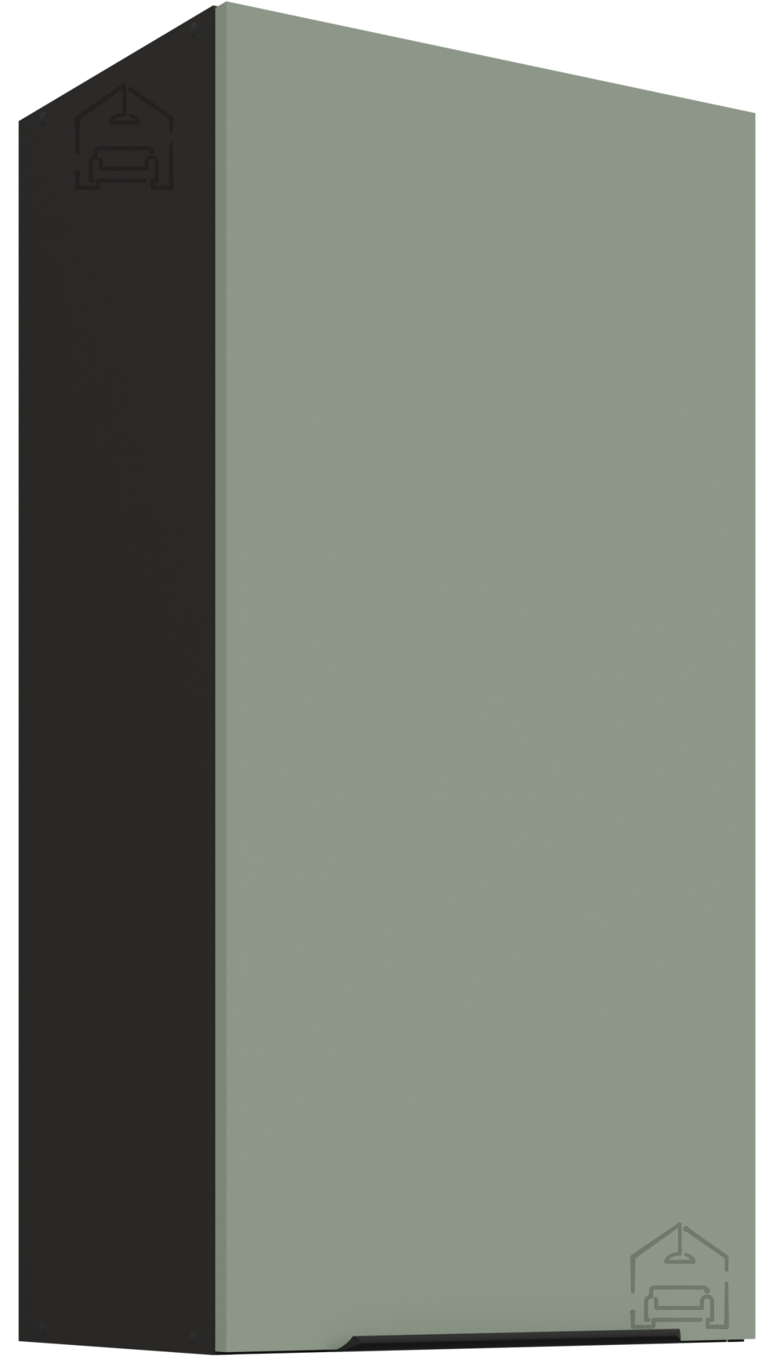 Die Arbeitsplatte mit der Bezeichnung 38‑6499 Marmor Roma sorgt für einen eleganten Abschluss des Ganzen. Das Marmormuster harmoniert schön mit den farbigen Fronten und verleiht einen Hauch von Prestige. Die Oberfläche ist feuchtigkeitsbeständig und leicht zu reinigen, was eine unbeschwerte Zubereitung von Speisen ermöglicht. Die Küchenelemente sind mit ästhetisch und praktisch gestalteten Griffen Edge UA‑HEXA aus schwarz‑aluminiumlegiertem Material ausgestattet. Die Griffe sind in verschiedenen Abständen – von 64 mm bis 320 mm – erhältlich, was eine Anpassung an unterschiedliche Tür‑ und Schubladengrößen ermöglicht.