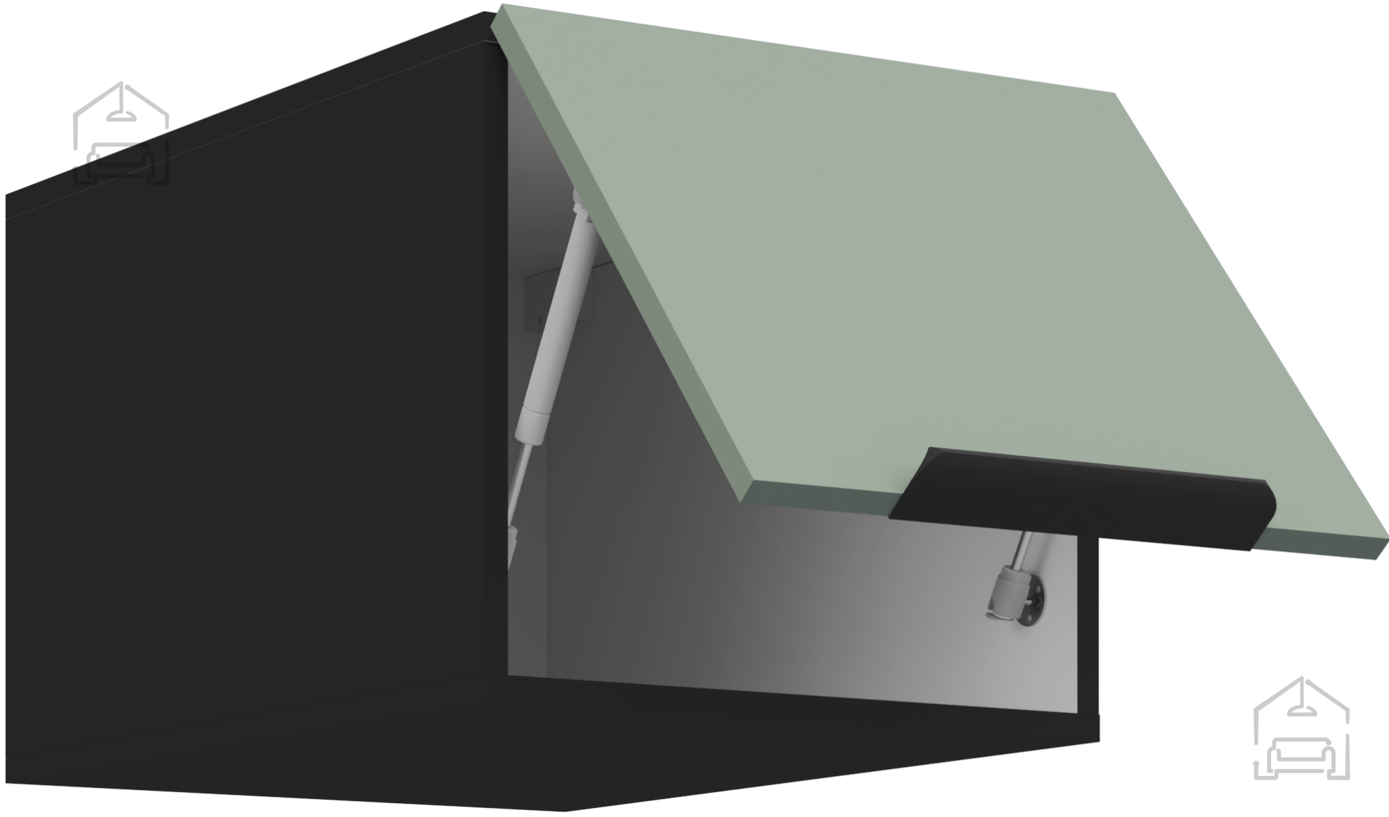 Die laminierte Oberfläche ist beständig gegen Flecken, Wasser und gelegentliche mechanische Belastungen, wodurch die Küche Aria leicht zu reinigen ist. Ein weiches Tuch und ein mildes Reinigungsmittel genügen. Die Kanten der Elemente sind präzise verarbeitet, was das Eindringen von Feuchtigkeit verhindert und die Lebensdauer verlängert. Dank der Soft-Close-Systeme und der hochwertigen Beschläge wird die Küche ihre Funktionalität und ihr Erscheinungsbild auch bei täglicher intensiver Nutzung lange bewahren.