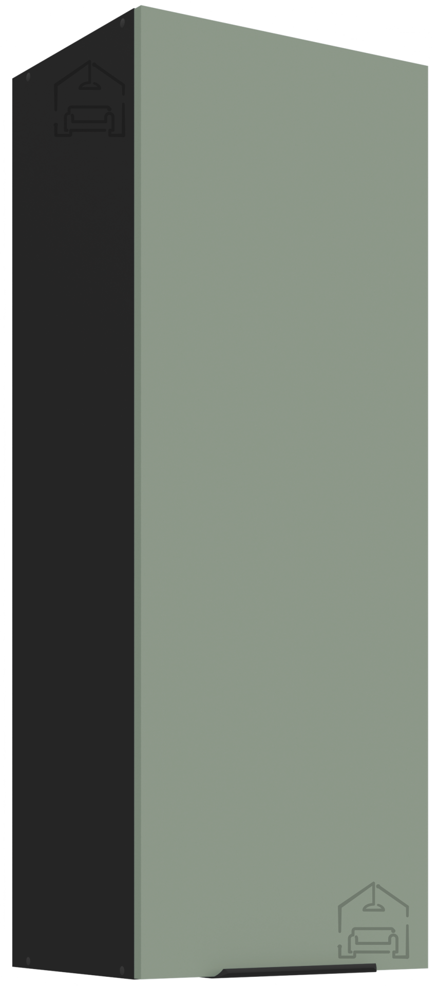 Die Arbeitsplatte mit der Bezeichnung 38‑6499 Marmor Roma sorgt für einen eleganten Abschluss des Ganzen. Das Marmormuster harmoniert schön mit den farbigen Fronten und verleiht einen Hauch von Prestige. Die Oberfläche ist feuchtigkeitsbeständig und leicht zu reinigen, was eine unbeschwerte Zubereitung von Speisen ermöglicht. Die Küchenelemente sind mit ästhetisch und praktisch gestalteten Griffen Edge UA‑HEXA aus schwarz‑aluminiumhaltiger Legierung ausgestattet. Die Griffe sind in verschiedenen Abständen erhältlich – von 64 mm bis 320 mm – was eine Anpassung an unterschiedliche Tür‑ und Schubladengrößen ermöglicht.