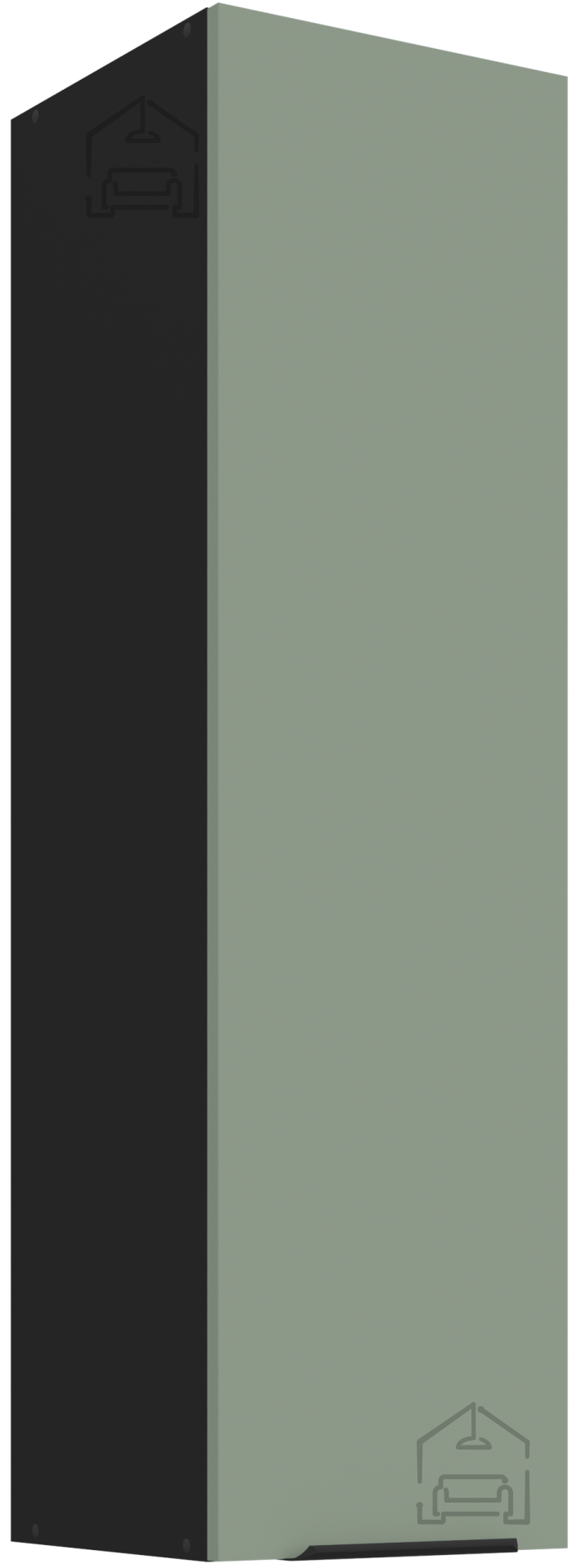 Die Arbeitsplatte mit der Bezeichnung 38‑6499 Marmor Roma sorgt für einen eleganten Abschluss des Ganzen. Das Marmormuster harmoniert schön mit den farbigen Fronten und verleiht einen Hauch von Prestige. Die Oberfläche ist feuchtigkeitsbeständig und leicht zu reinigen, was eine unbeschwerte Zubereitung von Speisen ermöglicht. Die Küchenelemente sind mit ästhetisch und praktisch gestalteten Griffen Edge UA‑HEXA aus schwarz‑aluminiumlegiertem Material ausgestattet. Die Griffe sind in verschiedenen Abständen – von 64 mm bis 320 mm – erhältlich, was eine Anpassung an unterschiedliche Tür‑ und Schubladengrößen ermöglicht.