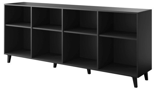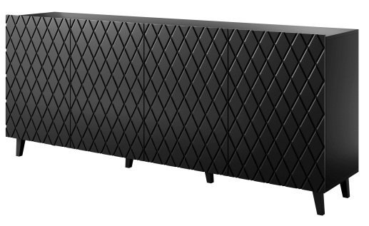 Die schwarze matte Oberfläche der Kommode Asti verleiht dem Raum Tiefe und Eleganz. In Kombination mit anderen Möbelstücken in natürlichen Holztönen oder mit Metallelementen schafft sie ein ausgewogenes und modernes Interieur. Dank ihrer Breite von 200 cm ermöglicht die Kommode das Platzieren vieler Gegenstände auf der oberen Fläche – von dekorativen Vasen und Lampen bis hin zu Fernsehern oder Lautsprechern. Ihre Höhe von 82 cm ist optimal für ergonomische Nutzung und bequemen Zugang.