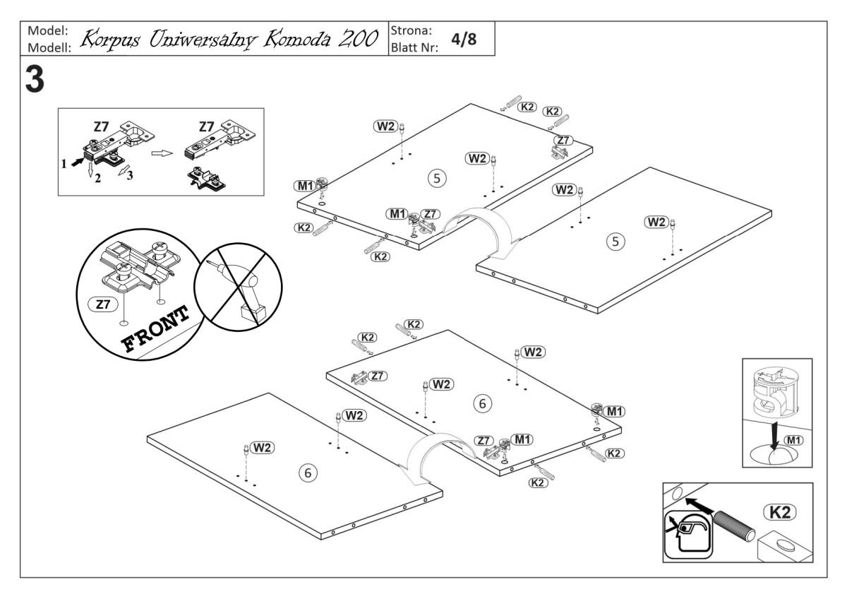 Oberflächen aus laminierter Platte und MDF sind leicht zu reinigen – ein weiches Tuch und ein mildes Reinigungsmittel ohne Schleifpartikel genügen. Die PVC-Folie auf den Fronten bietet zusätzlichen Schutz vor Feuchtigkeit und Staub, sodass die Kommode ihr Aussehen auch nach vielen Jahren behält. Dank der hochwertigen Verarbeitung in der polnischen Fabrik Halmar ist jedes Stück präzise bearbeitet und für eine langjährige Nutzung vorbereitet.