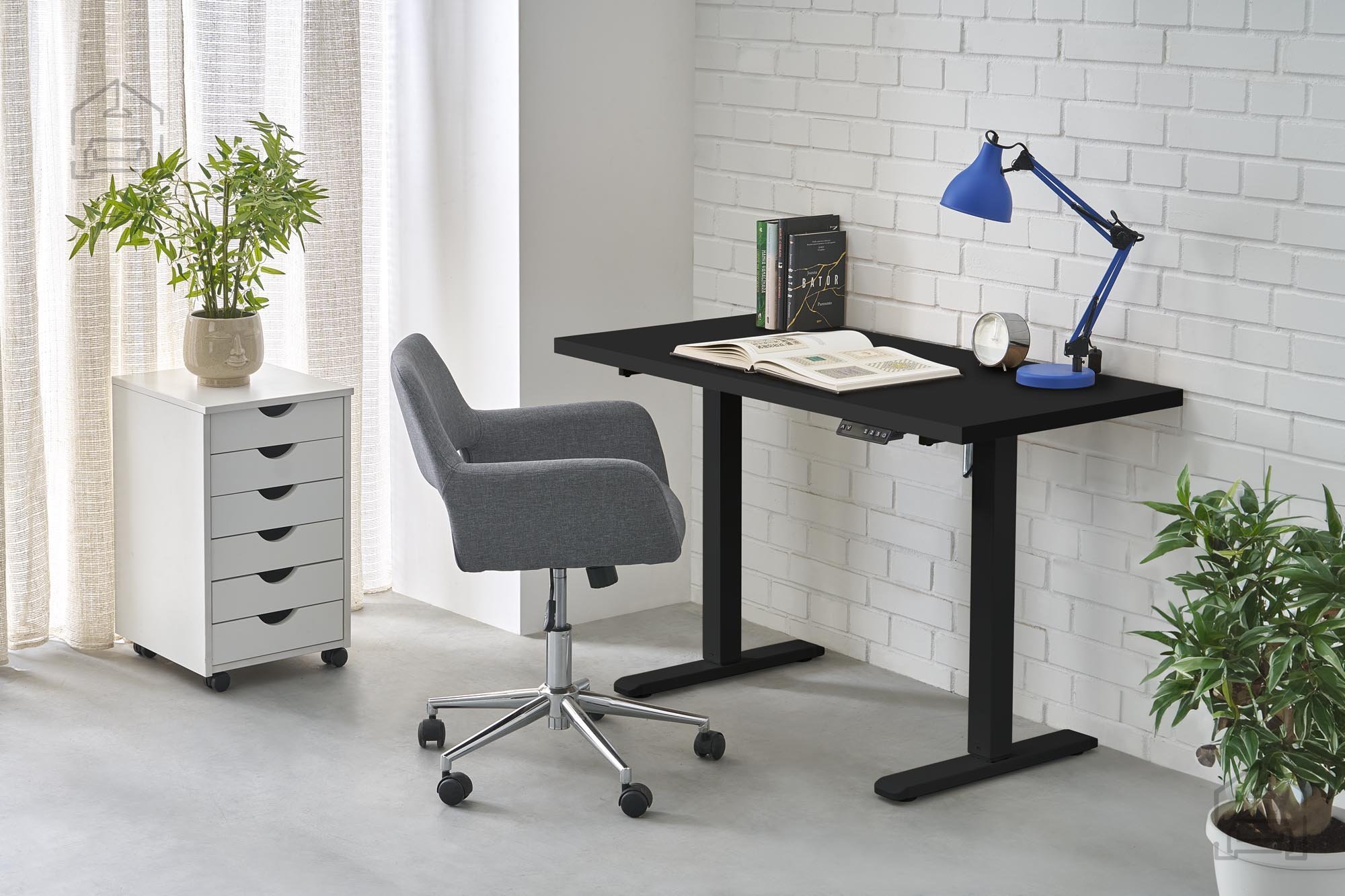 Der Schreibtisch B54 mit Höhenverstellung – Halmar ist eine moderne Lösung für alle, die bei der Arbeit oder beim Lernen Ergonomie, Funktionalität und ästhetische Perfektion schätzen. Der Tisch vereint mit seiner schwarzen Farbe und der minimalistischen Form Praktikabilität mit schlichter Eleganz und ermöglicht gleichzeitig die Höhenverstellung, was dem Benutzer optimalen Arbeitskomfort bietet. Der verstellbare Mechanismus ermöglicht die Nutzung im Sitzen oder Stehen, was hilft, eine gesunde Körperhaltung zu bewahren und Ermüdung bei längerer Arbeit am Computer oder mit Papier zu reduzieren.