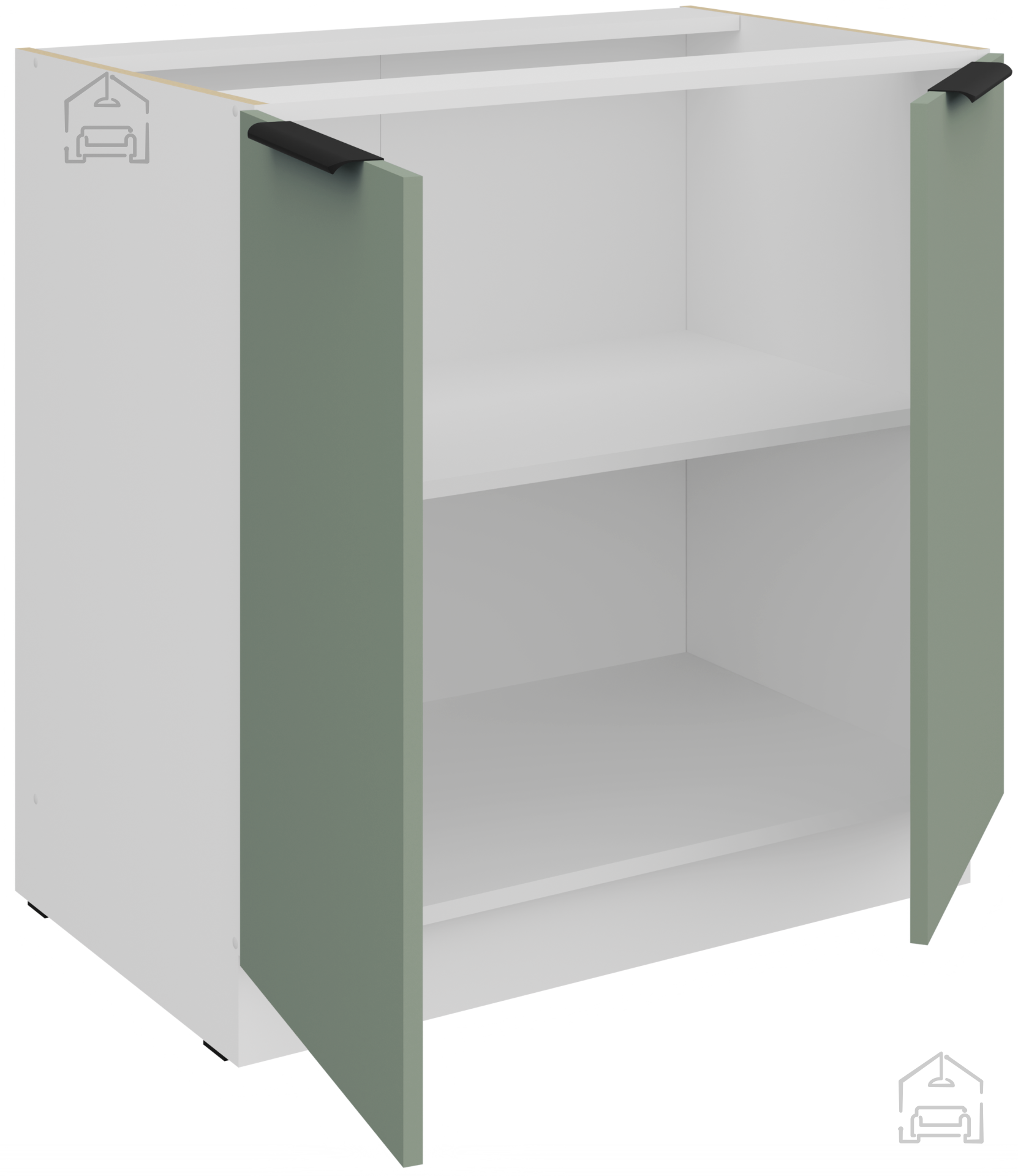 Die Basis des Küchenensembles ist ein Spanplattenrahmen, der strukturelle Stabilität und Widerstandsfähigkeit gegen tägliche Belastungen gewährleistet. Die Oberfläche aus 16 mm laminierten Platten ist kratz-, flecken- und hitzebeständig, was sie ideal für den intensiven Kücheneinsatz macht. Alle Fronten und Schubladen sind mit einem Soft-Close-System ausgestattet, das plötzliche Stöße verhindert und ein sanftes Schließen der Türen ermöglicht. Dieser Mechanismus trägt nicht nur zum Komfort bei, sondern verlängert auch die Lebensdauer der Beschläge.