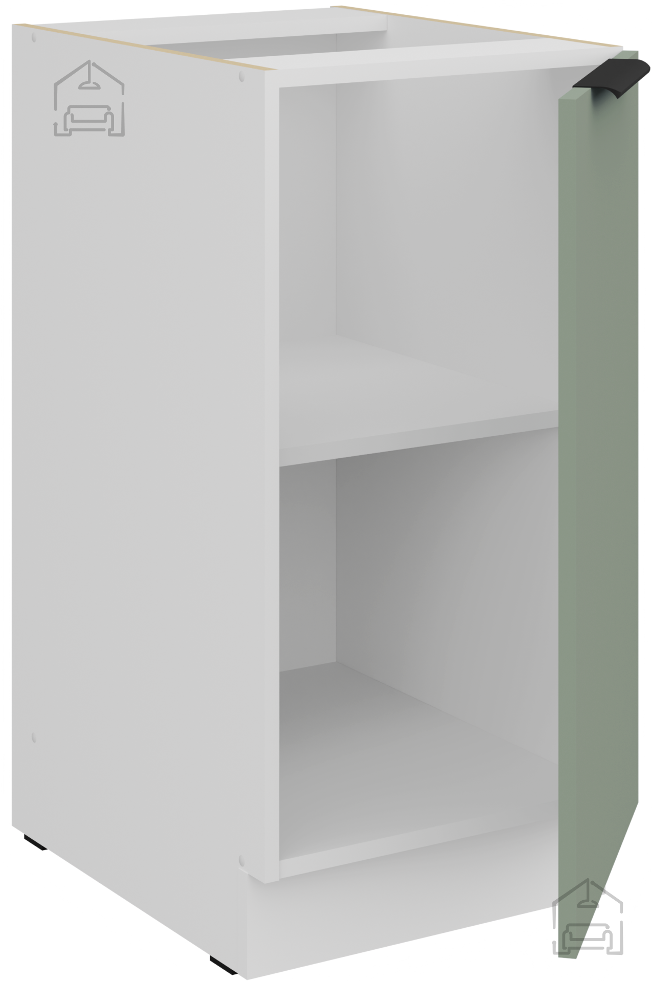 Die Basis des Küchenprogramms ist ein Spanplattenrahmen, der strukturelle Stabilität und Widerstandsfähigkeit gegen tägliche Belastungen gewährleistet. Die Oberfläche aus 16 mm dicker laminierter Platte ist kratz-, flecken- und hitzebeständig, was sie für den intensiven Küchengebrauch geeignet macht. Alle Fronten und Schubladen sind mit einem Soft-Close-System ausgestattet, das plötzliche Stöße verhindert und ein sanftes Schließen der Türen ermöglicht. Dieser Mechanismus trägt nicht nur zum Komfort bei, sondern auch zur längeren Lebensdauer der Beschläge.