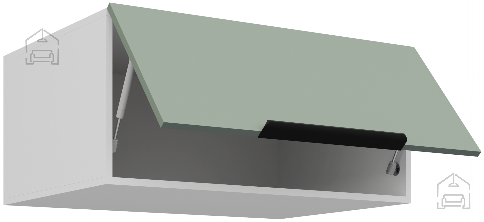 Die Basis des Küchenensembles ist ein Rahmen aus Spanplatte, der konstruktive Stabilität und Widerstand gegen tägliche Belastungen gewährleistet. Die Oberfläche aus 16 mm laminierten Platten ist kratz-, flecken- und hitzebeständig, was sie für den intensiven Kücheneinsatz geeignet macht. Alle Fronten und Schubladen sind mit einem Soft-Close-System ausgestattet, das plötzliche Stöße verhindert und ein sanftes Schließen der Türen ermöglicht. Dieser Mechanismus trägt nicht nur zum Komfort bei, sondern auch zur längeren Lebensdauer der Beschläge.