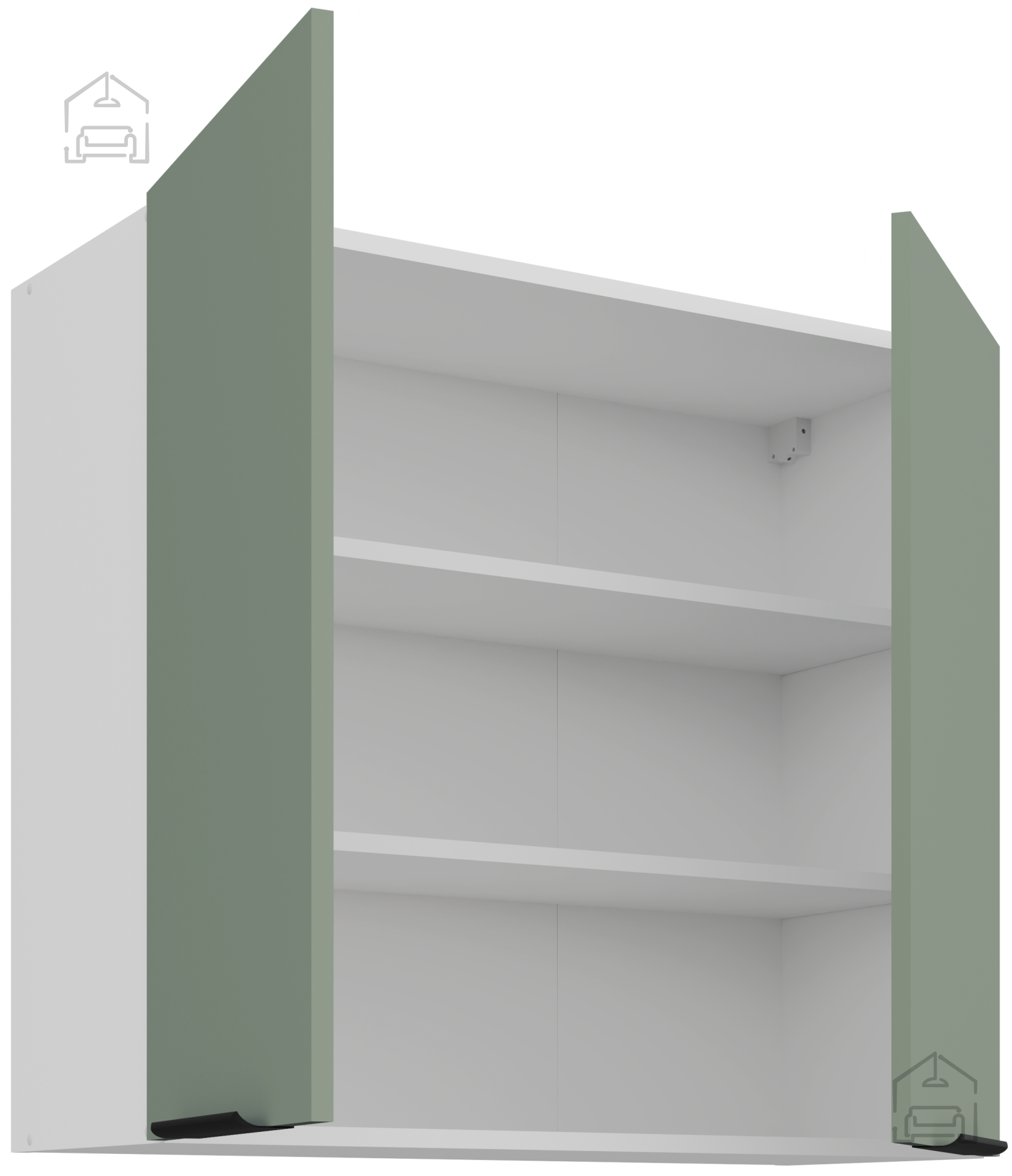 Die Basis des Küchenensembles ist ein Rahmen aus Spanplatte, der strukturelle Stabilität und Widerstandsfähigkeit gegen tägliche Belastungen gewährleistet. Die Oberfläche aus 16 mm laminierten Platten ist kratz-, flecken- und hitzebeständig, was sie ideal für den intensiven Küchengebrauch macht. Alle Fronten und Schubladen sind mit einem Soft-Close-System ausgestattet, das plötzliche Stöße verhindert und ein sanftes Schließen der Türen ermöglicht. Dieser Mechanismus trägt nicht nur zum Komfort bei, sondern auch zur längeren Lebensdauer der Beschläge.