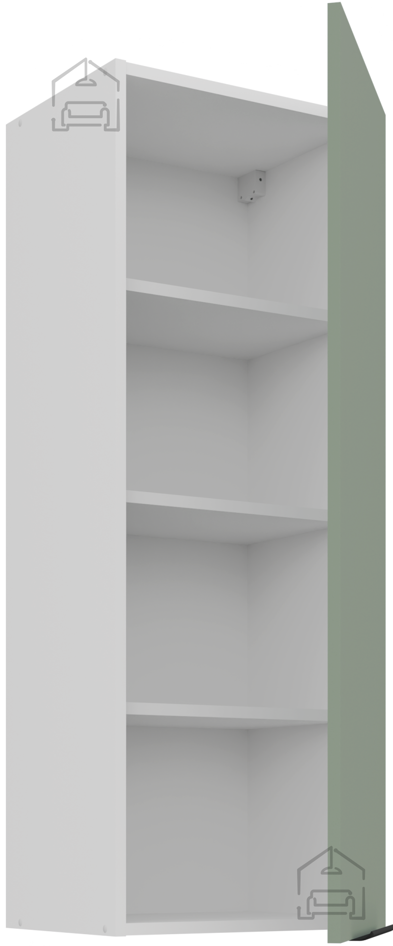 Die Basis des Küchenensembles ist ein Rahmen aus Spanplatte, der strukturelle Stabilität und Widerstandsfähigkeit gegen tägliche Belastungen gewährleistet. Die Oberfläche aus 16 mm laminierten Platten ist kratz-, flecken- und hitzebeständig, was sie für den intensiven Kücheneinsatz geeignet macht. Alle Fronten und Schubladen sind mit einem Soft-Close-System ausgestattet, das plötzliche Stöße verhindert und ein sanftes Schließen der Türen ermöglicht. Dieser Mechanismus trägt nicht nur zum Komfort bei, sondern auch zur längeren Lebensdauer der Beschläge.