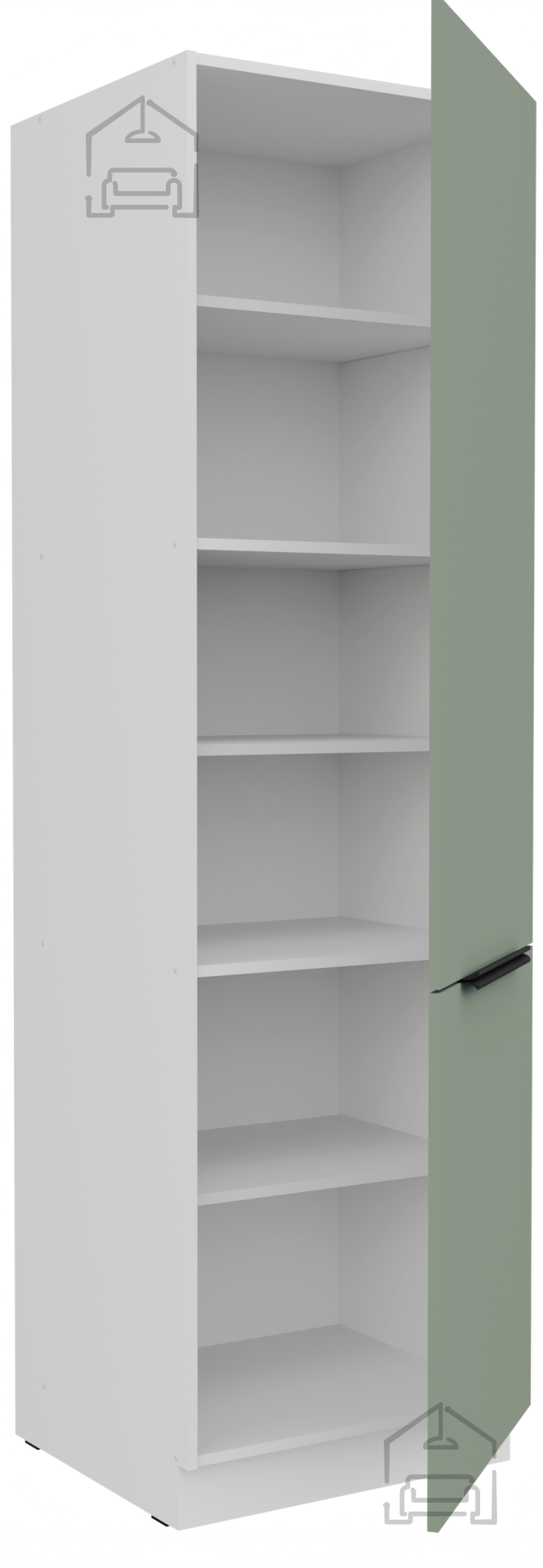 Die Basis der Küchenzeile ist ein Rahmen aus Spanplatte, der konstruktive Stabilität und Widerstandsfähigkeit gegen tägliche Belastungen gewährleistet. Die Oberfläche aus 16 mm laminierten Platten ist kratz-, flecken- und hitzebeständig, was sie ideal für den intensiven Küchengebrauch macht. Alle Fronten und Schubladen sind mit einem Soft-Close-System ausgestattet, das plötzliche Stöße verhindert und ein sanftes Schließen der Türen ermöglicht. Dieser Mechanismus trägt nicht nur zum Komfort bei, sondern verlängert auch die Lebensdauer der Beschläge.