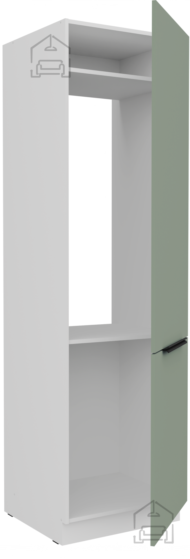Die Basis des Küchenensembles bildet ein Spanplattenrahmen, der strukturelle Stabilität und Widerstandsfähigkeit gegen tägliche Belastungen gewährleistet. Die Oberfläche aus 16 mm laminierten Platten ist kratz-, flecken- und hitzebeständig, was sie ideal für den intensiven Küchengebrauch macht. Alle Fronten und Schubladen sind mit einem Soft-Close-System ausgestattet, das plötzliche Stöße verhindert und ein sanftes Schließen der Türen ermöglicht. Dieser Mechanismus trägt nicht nur zum Komfort bei, sondern auch zur längeren Lebensdauer der Beschläge.