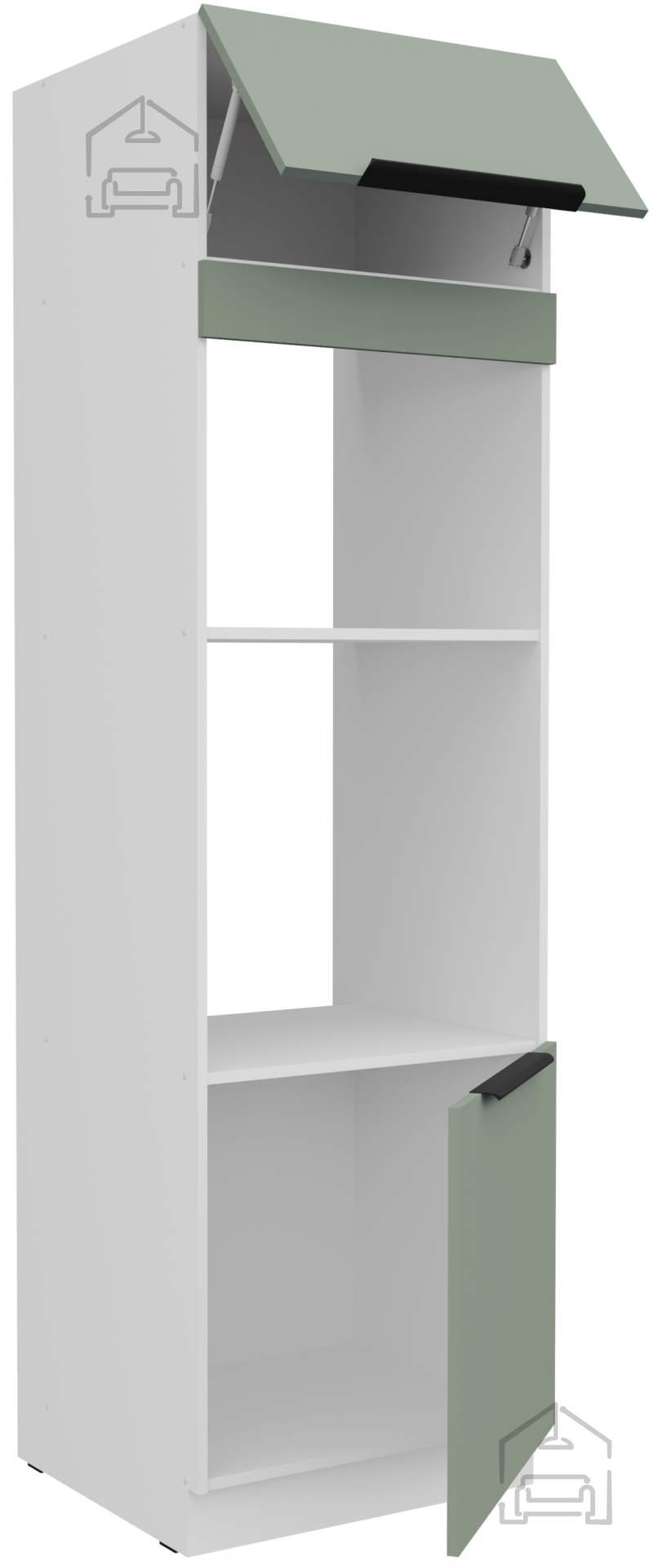 Die Kombination aus Aquamarin und Weiß schafft ein frisches, modernes und zugleich beruhigendes Erscheinungsbild. Der Aquamarin-Ton verleiht dem Raum eine individuelle Note, während die weiße Farbe Helligkeit und ein Gefühl von Geräumigkeit bewahrt. Eine solche Kombination passt gut zu verschiedenen Bodenbelägen und Wänden, von hellem Holz bis zu Zementtönen. Aria eignet sich sowohl für kleinere als auch größere Küchen, da der Farbkontrast nicht zu auffällig wirkt, sondern den gesamten Raum harmonisch ergänzt.