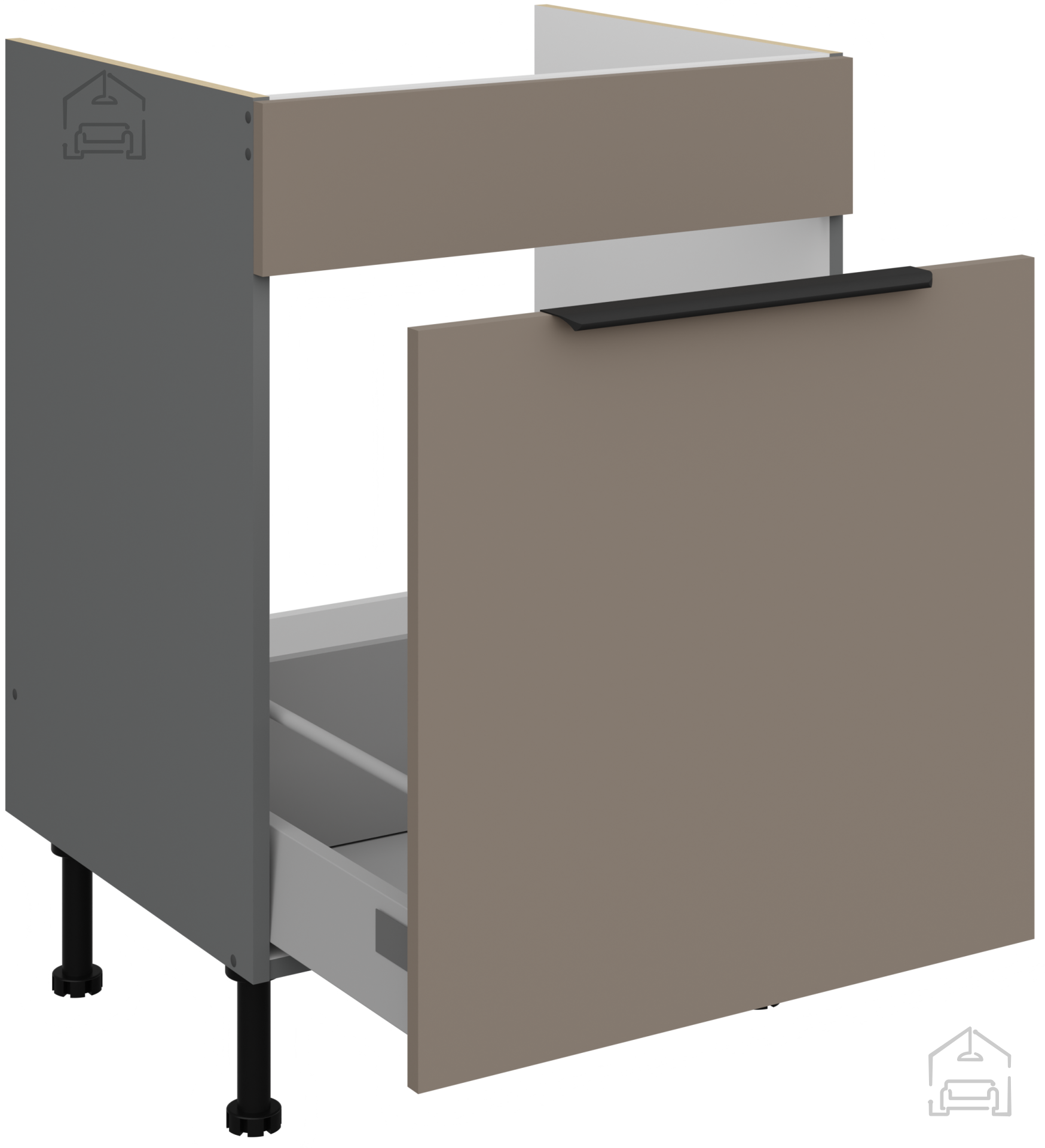 Das Küchenensemble Aria in der Farbkombination sandgrau/anthrazit stellt einen modernen Ansatz für die Gestaltung des Küchenraums dar. Es ist aus hochwertiger laminierter Platte mit einer Stärke von 16 mm gefertigt, die Festigkeit, Langlebigkeit und einfache Reinigung gewährleistet. Dank präziser Verarbeitung und der Verwendung bewährter Materialien aus der Fabrik Stolarz-Lempert in Polen zeichnet sich das Set durch eine zuverlässige Konstruktion und raffinierte Details aus, die den Erwartungen moderner Benutzer entsprechen.