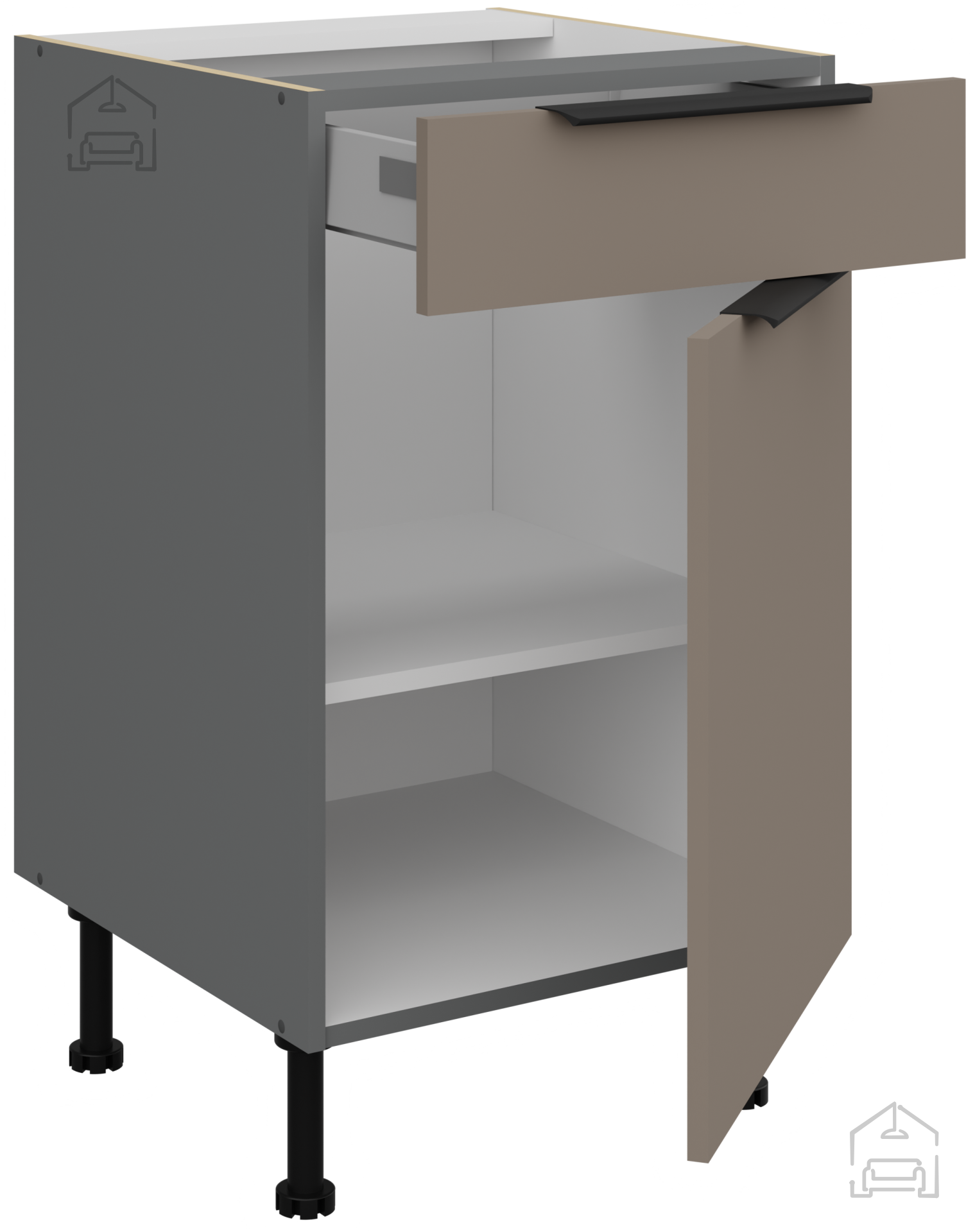 Das Küchenensemble Aria ist für alle gedacht, die ein Gleichgewicht zwischen modernem Aussehen, hochwertiger Verarbeitung und Funktionalität suchen. Die Farbkombination Sandgrau/Anthrazit schafft einen harmonischen Raum, der sich leicht mit anderen Materialien wie Metall, Glas oder Holz kombinieren lässt. Dank der einfachen Pflege, langlebigen Materialien und durchdachten Details wird dieses Küchenensemble sein ursprüngliches Aussehen lange bewahren und ein komfortables Benutzererlebnis bieten.