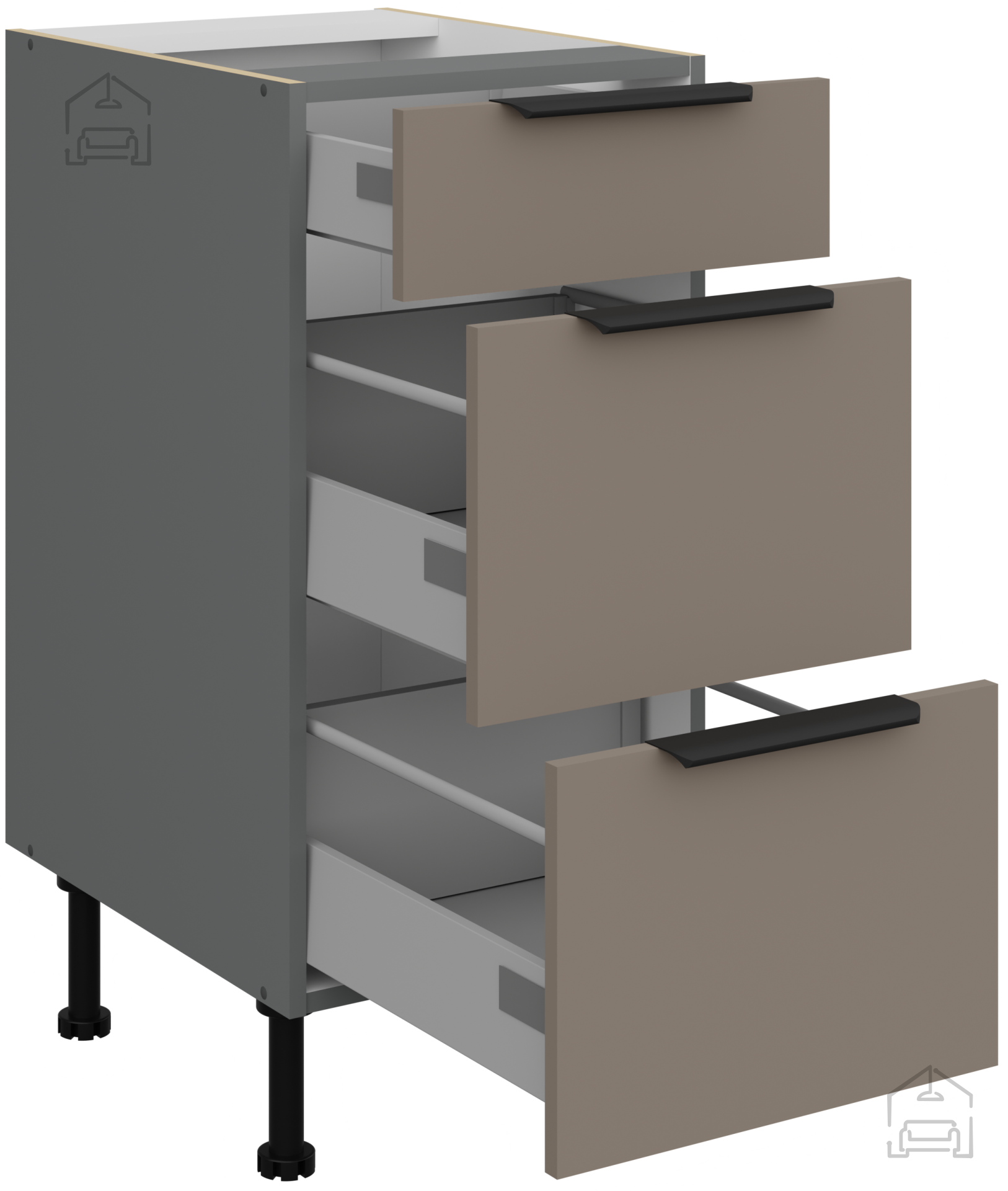Das Küchenensemble Aria in der Farbkombination Sandgrau/Anthrazit stellt einen modernen Ansatz für die Gestaltung des Küchenraums dar. Es besteht aus einer hochwertigen laminierten Platte mit einer Stärke von 16 mm, die Festigkeit, Langlebigkeit und einfache Reinigung gewährleistet. Dank präziser Verarbeitung und der Verwendung bewährter Materialien aus der Fabrik Stolarz-Lempert in Polen zeichnet sich das Set durch eine zuverlässige Konstruktion und raffinierte Details aus, die den Erwartungen moderner Benutzer entsprechen.
