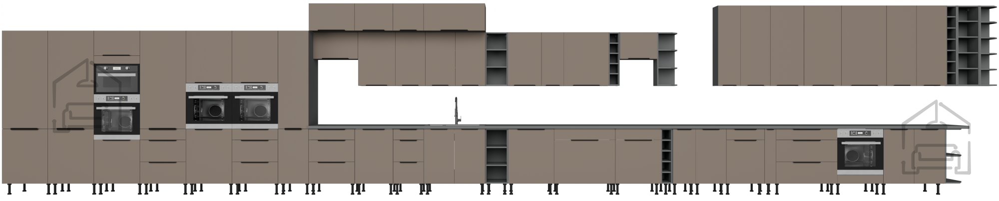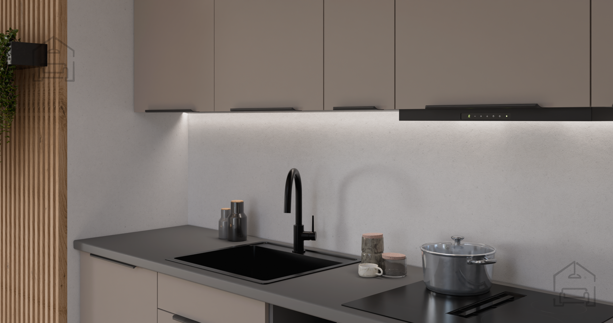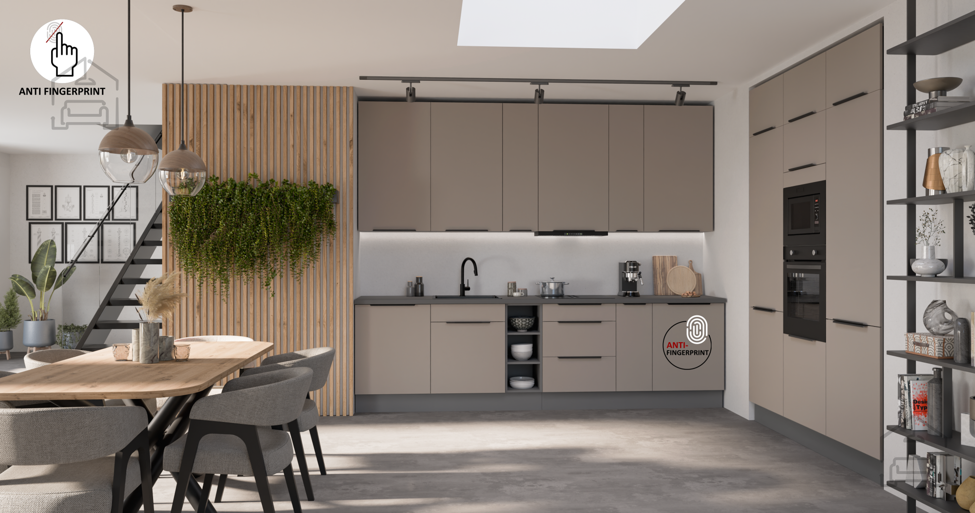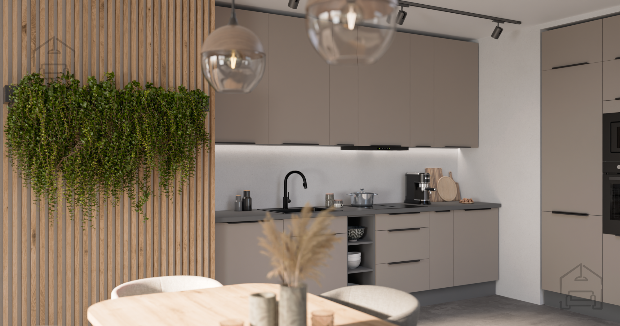Die Küchenzeile Aria ist für alle gedacht, die ein Gleichgewicht zwischen modernem Aussehen, hochwertiger Verarbeitung und Funktionalität suchen. Die Farbkombination Sandgrau/Anthrazit schafft einen harmonischen Raum, der sich leicht mit anderen Materialien wie Metall, Glas oder Holz kombinieren lässt. Dank der einfachen Pflege, der langlebigen Materialien und der durchdachten Details behält diese Küchenzeile lange ihr ursprüngliches Erscheinungsbild und bietet ein komfortables Benutzererlebnis.