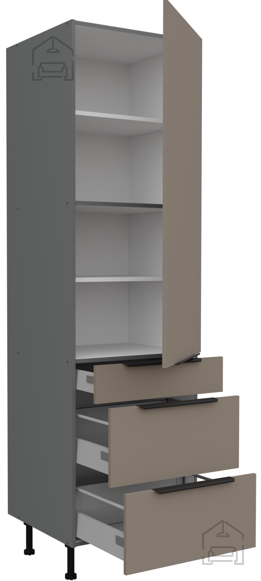 Das Küchenensemble Aria in der Farbkombination Sandgrau/Anthrazit stellt einen modernen Ansatz für die Gestaltung des Küchenraums dar. Es besteht aus einer hochwertigen laminierten Platte mit einer Stärke von 16 mm, die Festigkeit, Langlebigkeit und einfache Reinigung gewährleistet. Dank präziser Verarbeitung und der Verwendung bewährter Materialien aus der Fabrik Stolarz-Lempert in Polen zeichnet sich das Set durch eine zuverlässige Konstruktion und ausgefeilte Details aus, die den Erwartungen moderner Benutzer entsprechen.