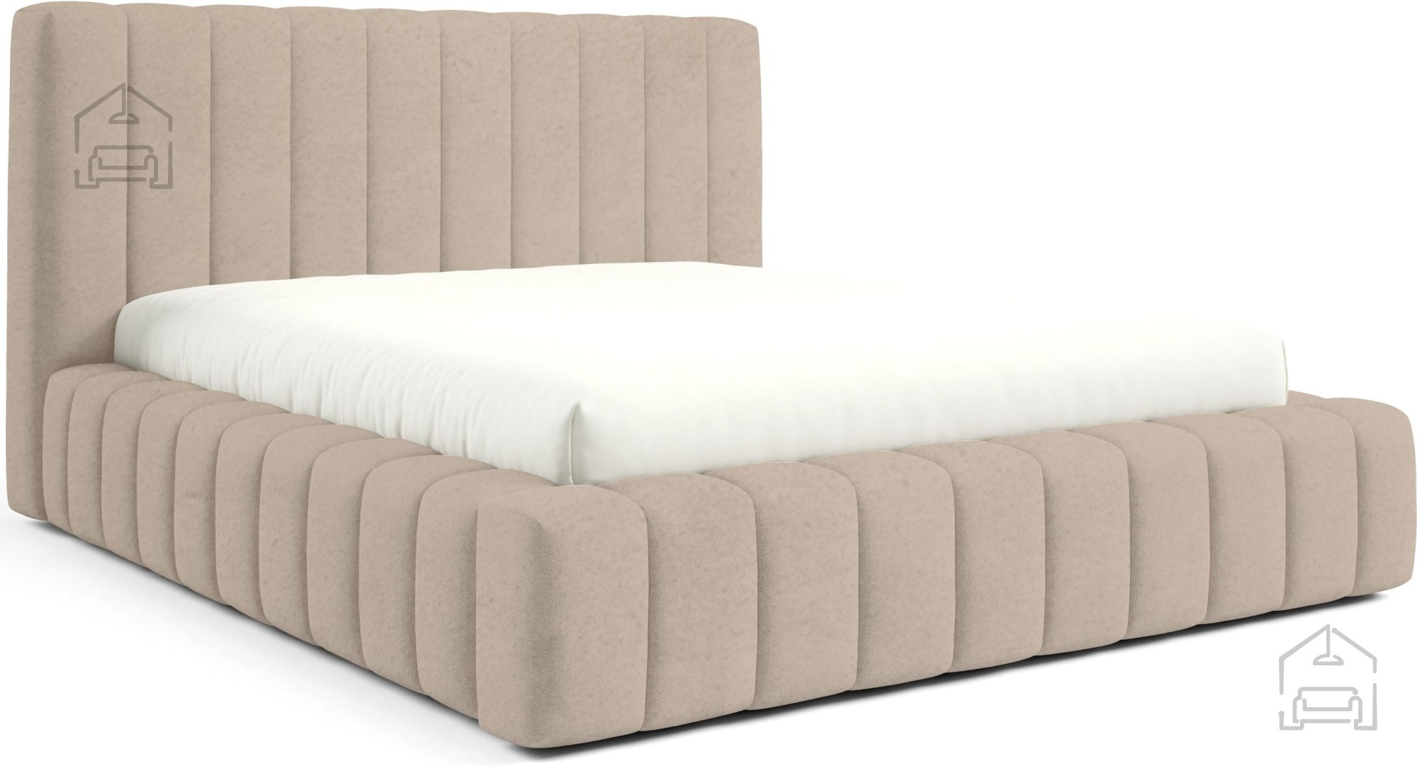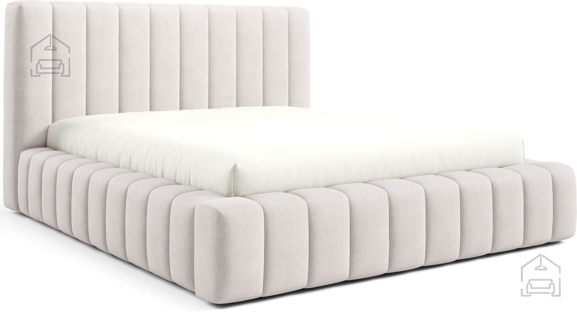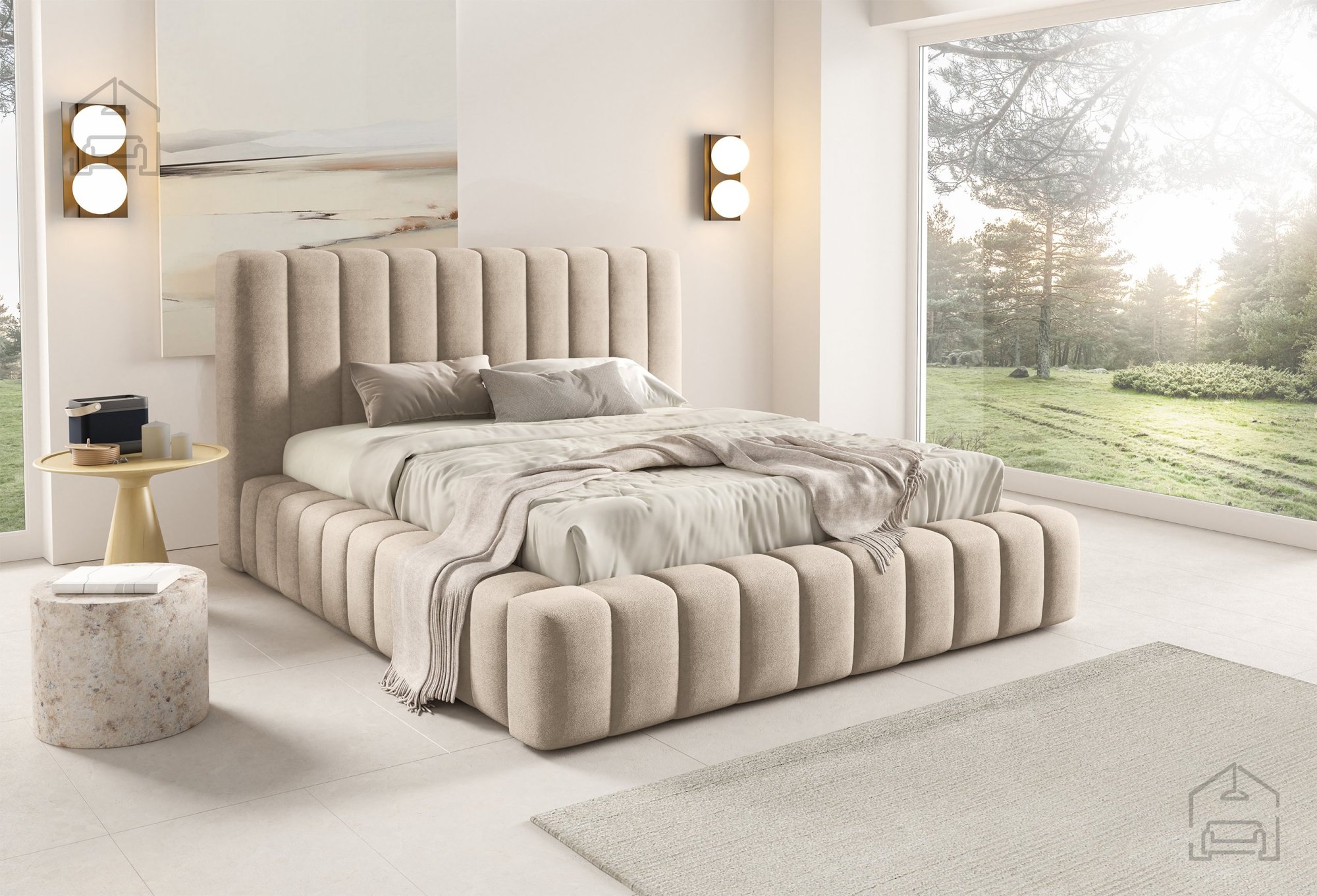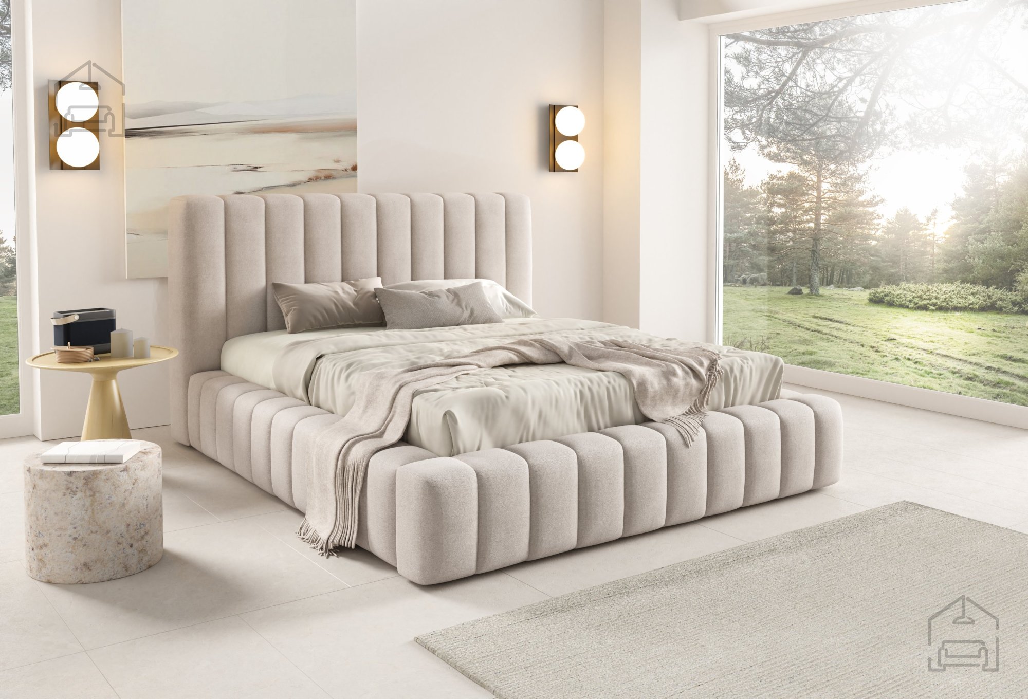 Die Gesamtmaße des Bettes betragen 245x127 cm, wobei die Höhe des Kopfteils 127 cm, die Höhe der Seitenblende 36 cm, die Dicke der Seitenblende 19 cm, die Dicke des Kopfteils 24 cm und die Höhe der Füße 1 cm (Gleiter) beträgt. Es ist in verschiedenen Breiten der Liegefläche erhältlich: 120, 140, 160, 180 oder 200 cm bei einer Länge von 200 cm. Der Benutzer kann zwischen verschiedenen Farbkombinationen und Stoffarten wählen, was eine perfekte Anpassung an den Stil des Schlafzimmers ermöglicht.