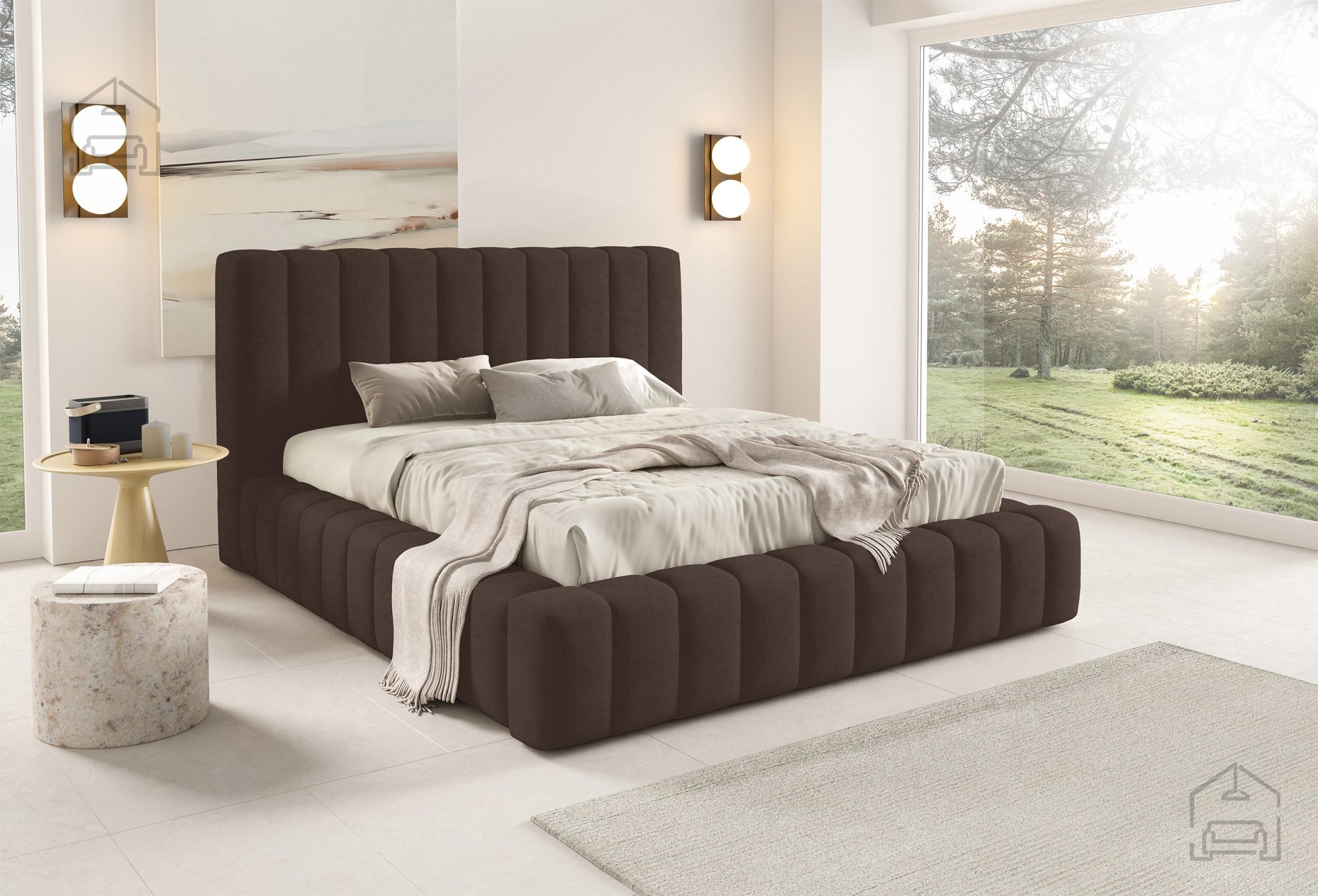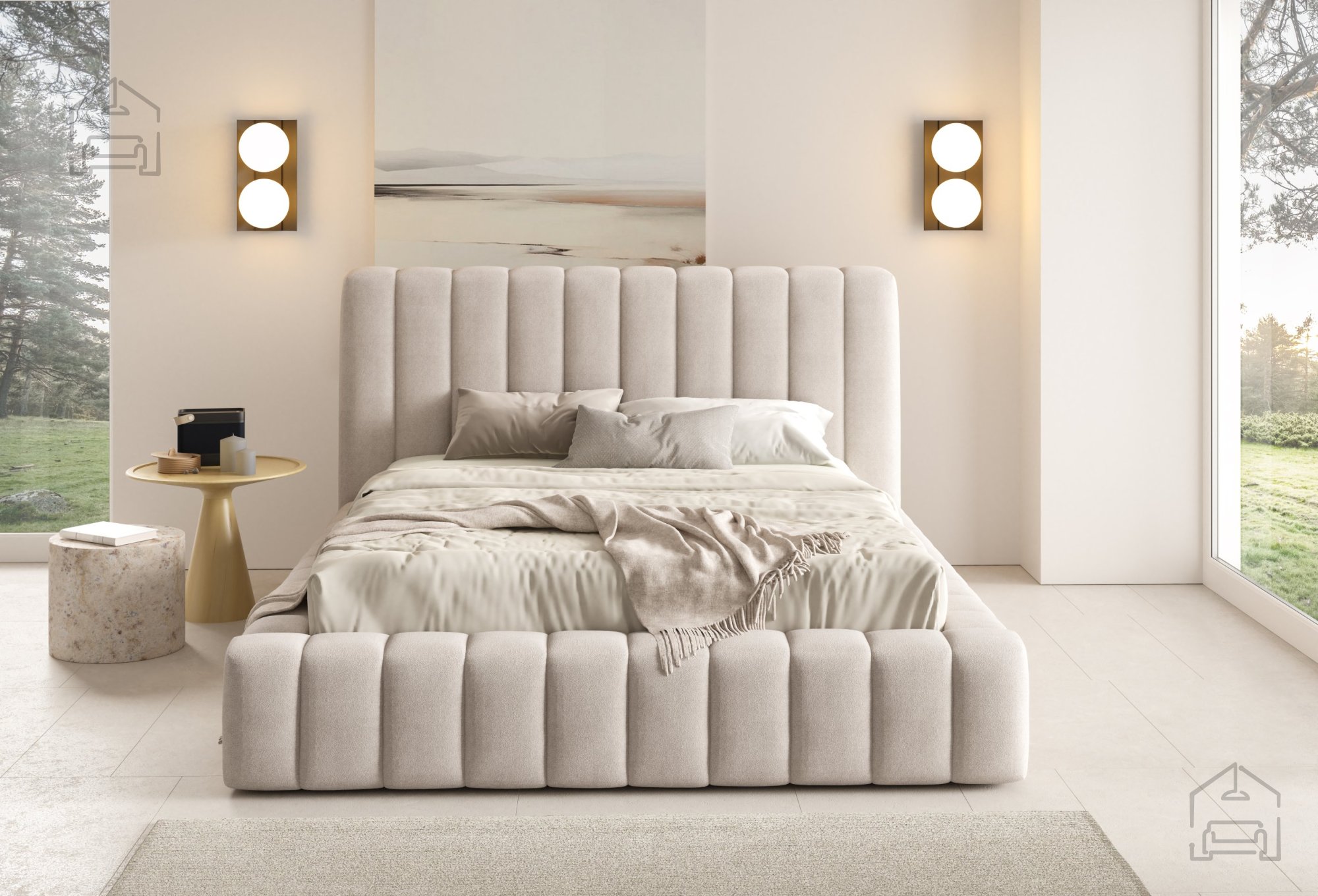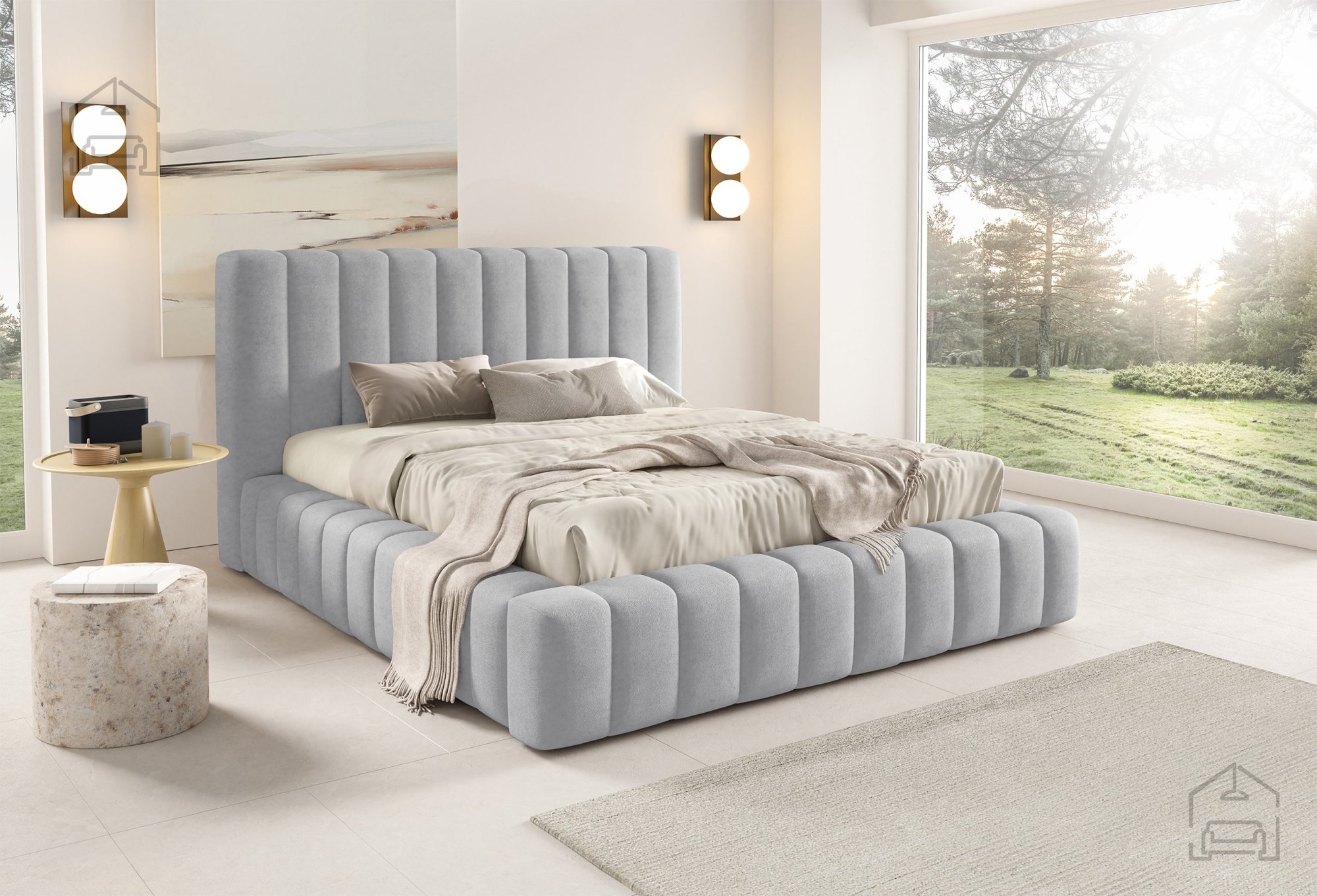 Das Bett Gino mit niedrigem Kopfteil ist ein modernes und funktionales Möbelstück, das Komfort, Ästhetik und praktische Nutzung vereint. Es wird in der Fabrik Sitzgarnituren PKMebel in Polen hergestellt, wo hochwertige Materialien und präzise Verarbeitung der Schlüssel zu langfristiger Nutzbarkeit sind. Der gepolsterte Rahmen und der hebbare Holzmechanismus ermöglichen einen einfachen Zugang zur geräumigen Bettkasten, was eine ideale Lösung für diejenigen ist, die den Platz im Schlafzimmer maximal ausnutzen möchten.
