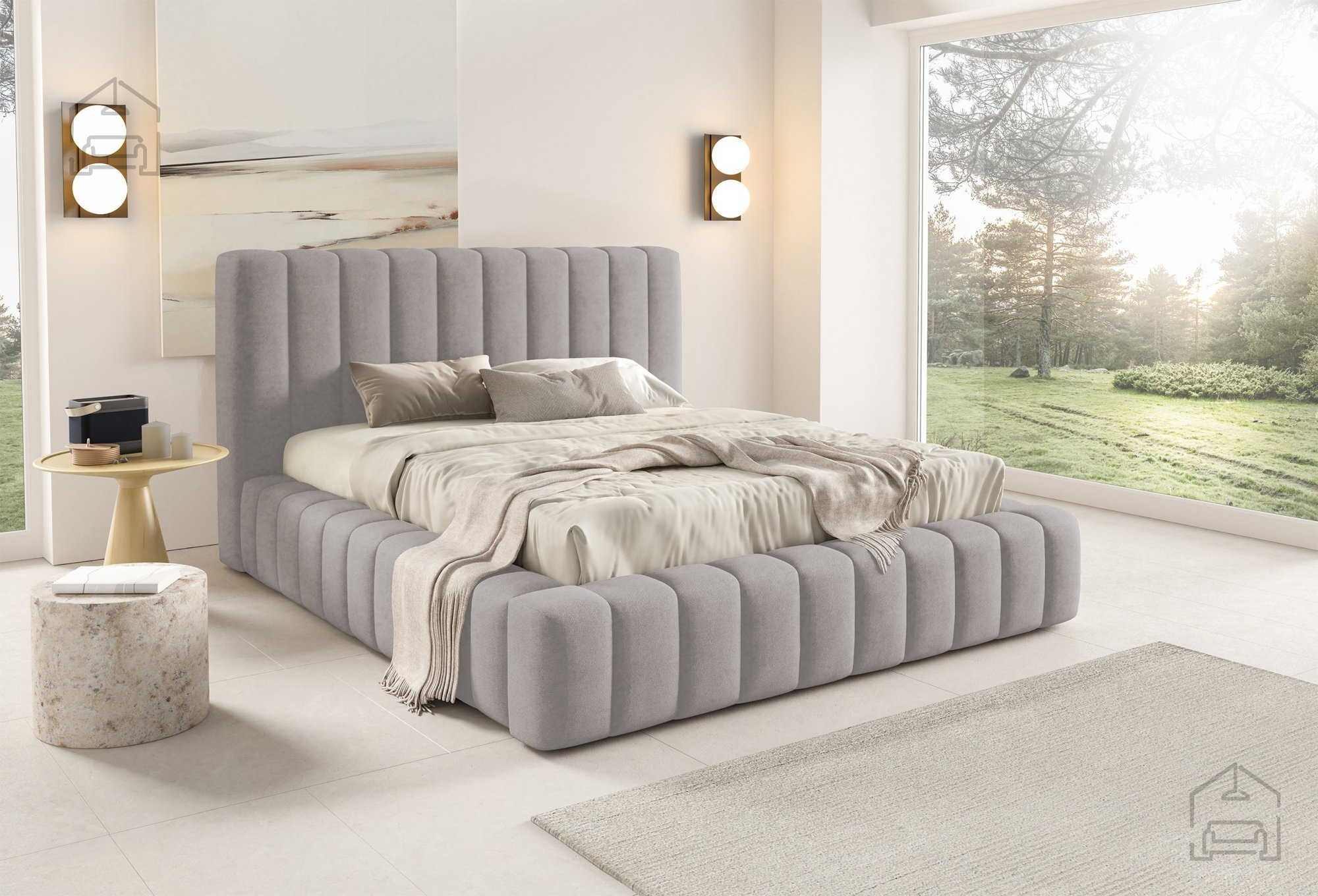 Das Bett Gino (niedriges Kopfteil) ist die ideale Wahl für alle, die modernes Design, hochwertige Verarbeitung und praktische Lösungen für den täglichen Gebrauch kombinieren möchten. Mit der Möglichkeit, verschiedene Größen und Materialien zu wählen, bietet es ein perfektes Gleichgewicht zwischen Ästhetik und Funktionalität und bewahrt gleichzeitig das Gefühl von Geräumigkeit und Ordnung in jedem Schlafzimmer.