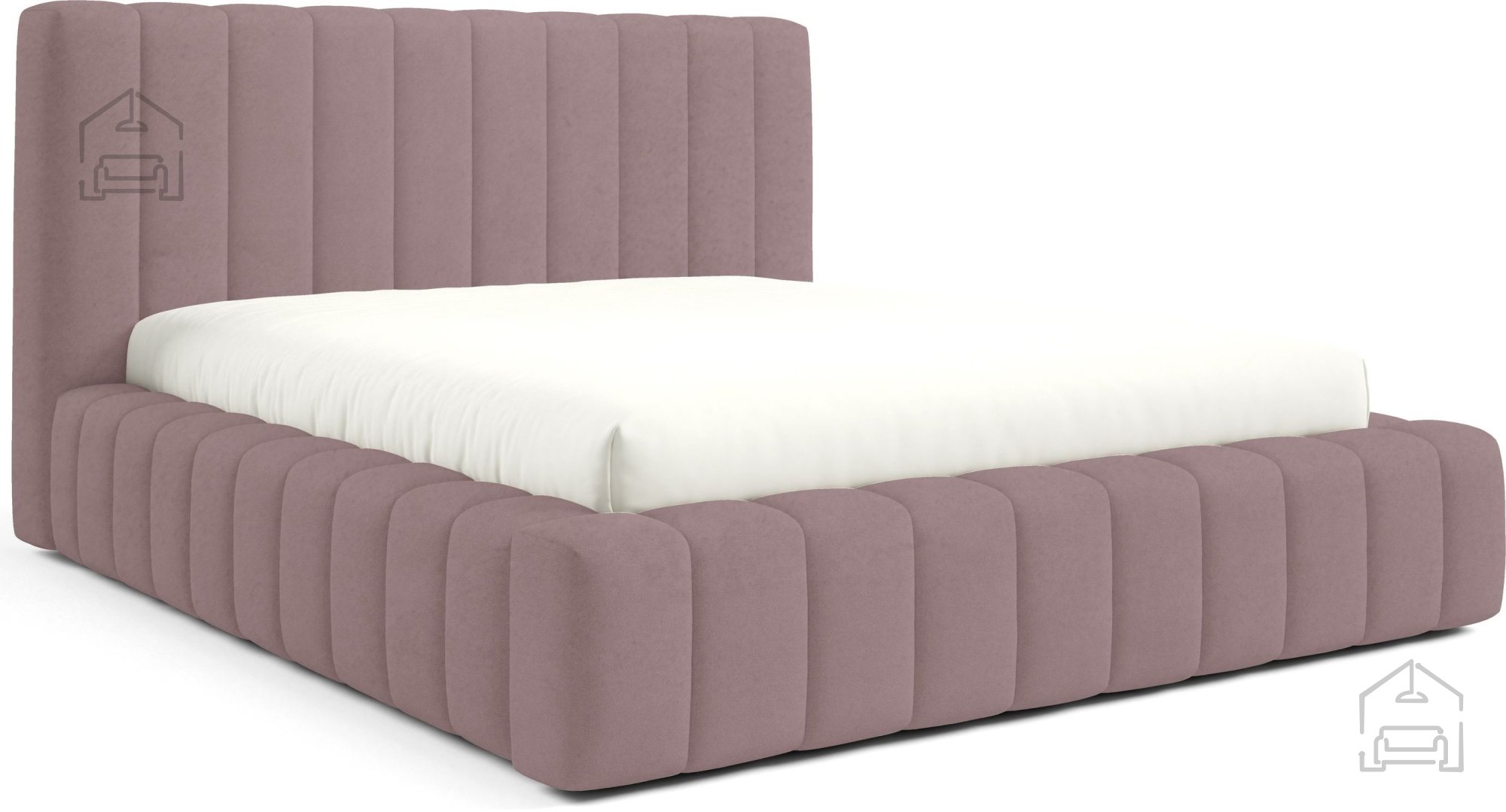 Das Bett ist mit einem weichen Stoff bezogen, der ein angenehmes Gefühl vermittelt und dem Raum Wärme verleiht. Auf dem Präsentationsfoto wird der Stoff Velluto 01 verwendet, der sich durch seine samtige Textur und seinen reichen Look auszeichnet. Die Kombination von Stoff und Massivholz in der Konstruktion gewährleistet Stabilität und eine lange Lebensdauer. Die Holzelemente bewahren ihre natürliche Festigkeit, während die Textilteile für Komfort und einen ästhetischen Eindruck sorgen.