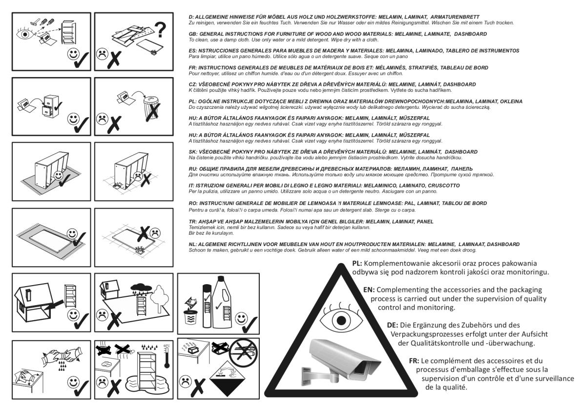 Die Kombination aus laminierter Platte und MDF-Material ermöglicht eine einfache Reinigung – zur Pflege genügt ein weiches, leicht feuchtes Tuch ohne aggressive Reinigungsmittel. Die Oberflächen sind flecken- und feuchtigkeitsbeständig, was die Nutzung in stärker beanspruchten Räumen wie Fluren oder Wohnzimmern zusätzlich erleichtert. Aufgrund der neutralen weißen Farbe passt die Kommode sowohl zu hellen als auch zu dunklen Möbeln und bietet zahlreiche Möglichkeiten zur Gestaltung des gesamten Ambientes.